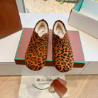 LP Cocooning Floaty Flat Orange Black Leopard Print Wool Fleece Lining And Suede 992982