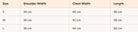 La anchura se mide de lado a lado, por debajo de las axilas, cuando la prenda está extendida.