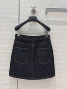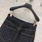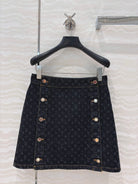 LV 25 Monogram Jacquard Logo Denim Skirt Black Cotton