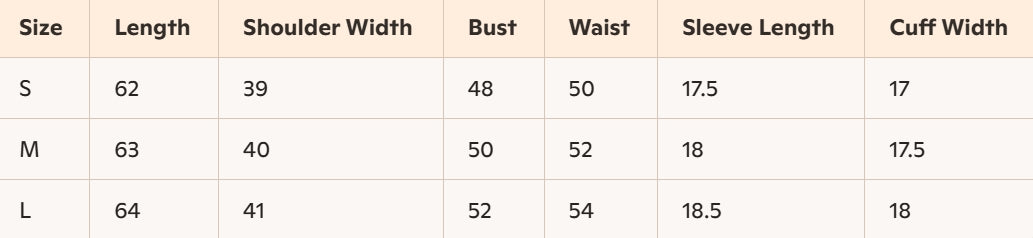 La longitud de las mangas se mide desde el hombro hasta el final de la muñeca.