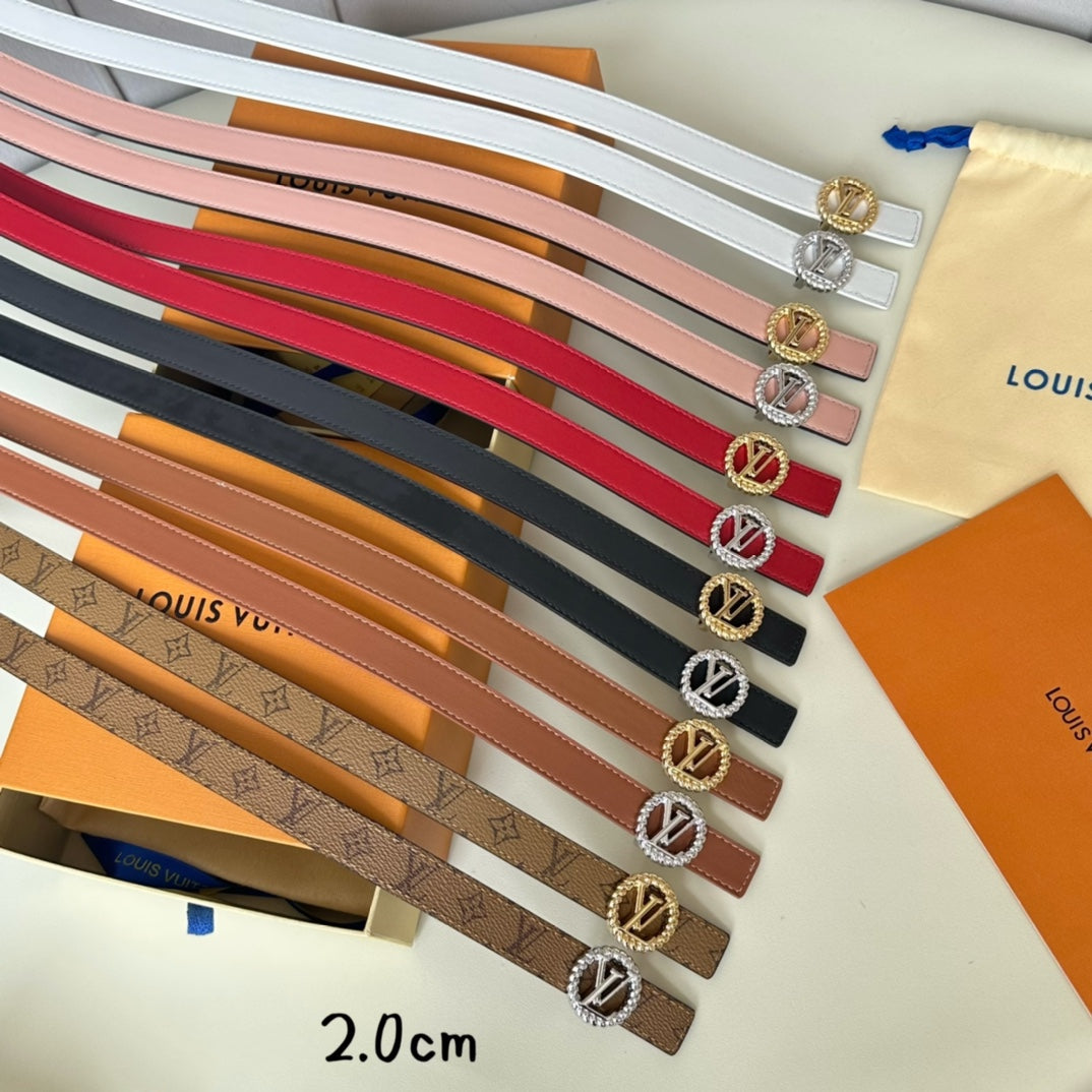 LV Circle Nautical 20mm Reversible Belt Gold Buckle Red Brown Lambskin