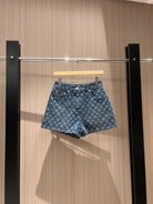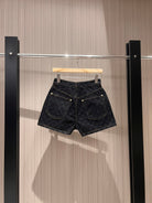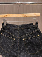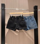 LV Flower Jacquard Denim Shorts Black Blue Cotton
