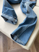 LV Flower Leather Label Straight Jeans Blue Cotton