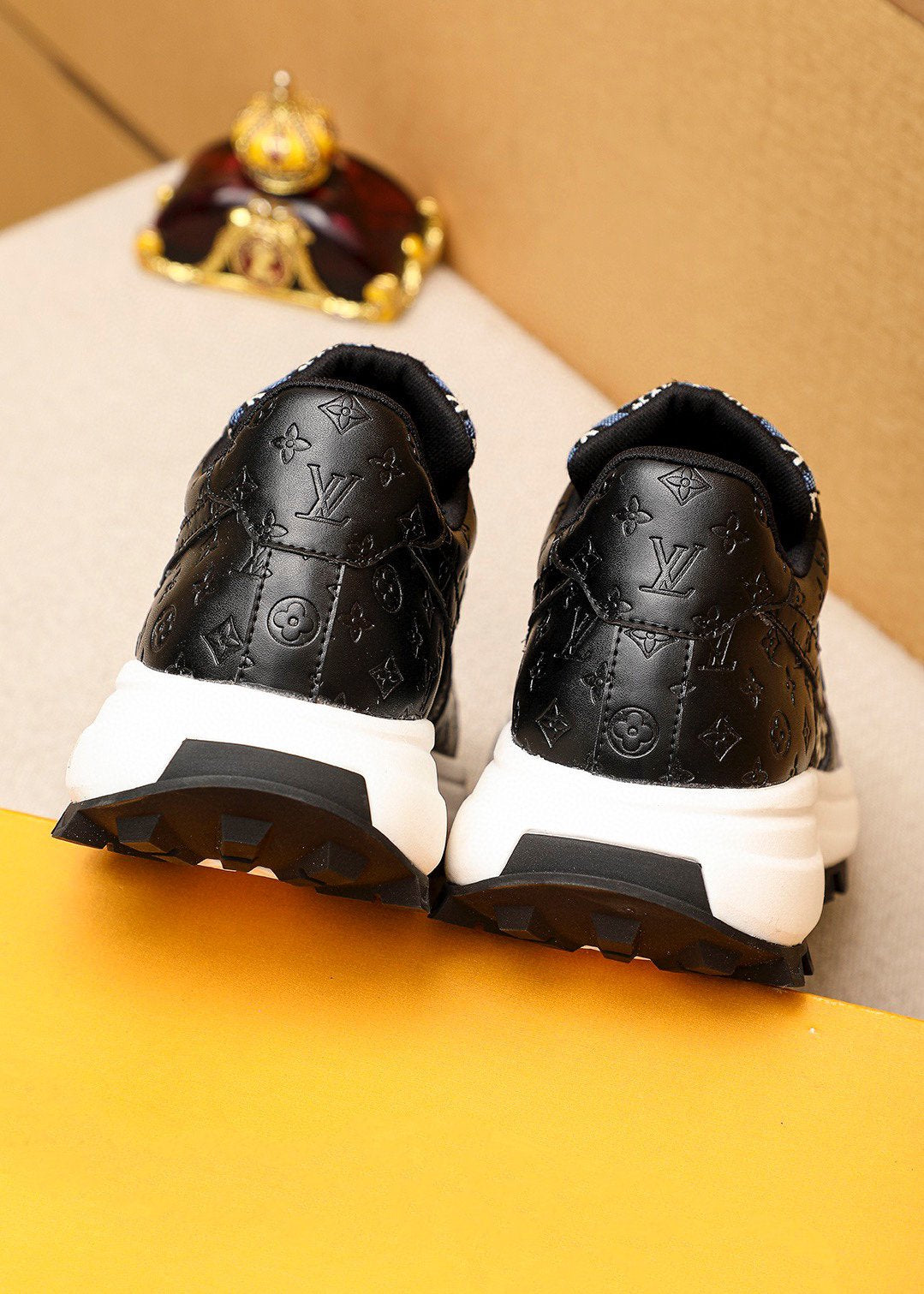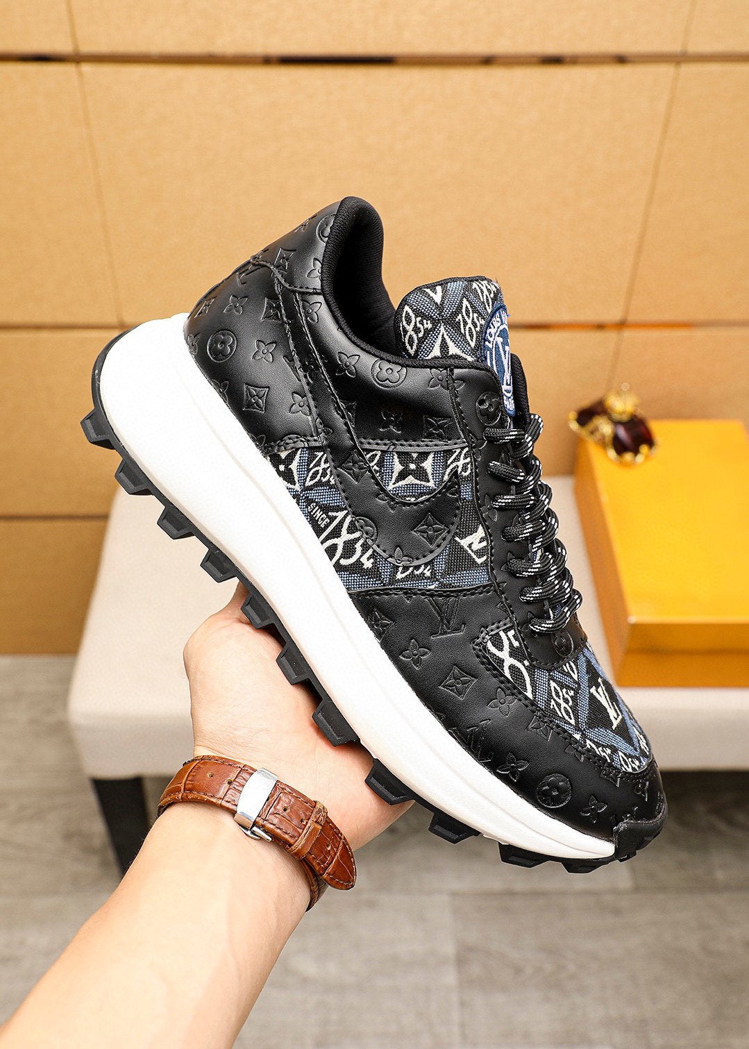 LV HIGH-END CLASSIC BLACK AND WHITE SUEDE MEN'S SHOES