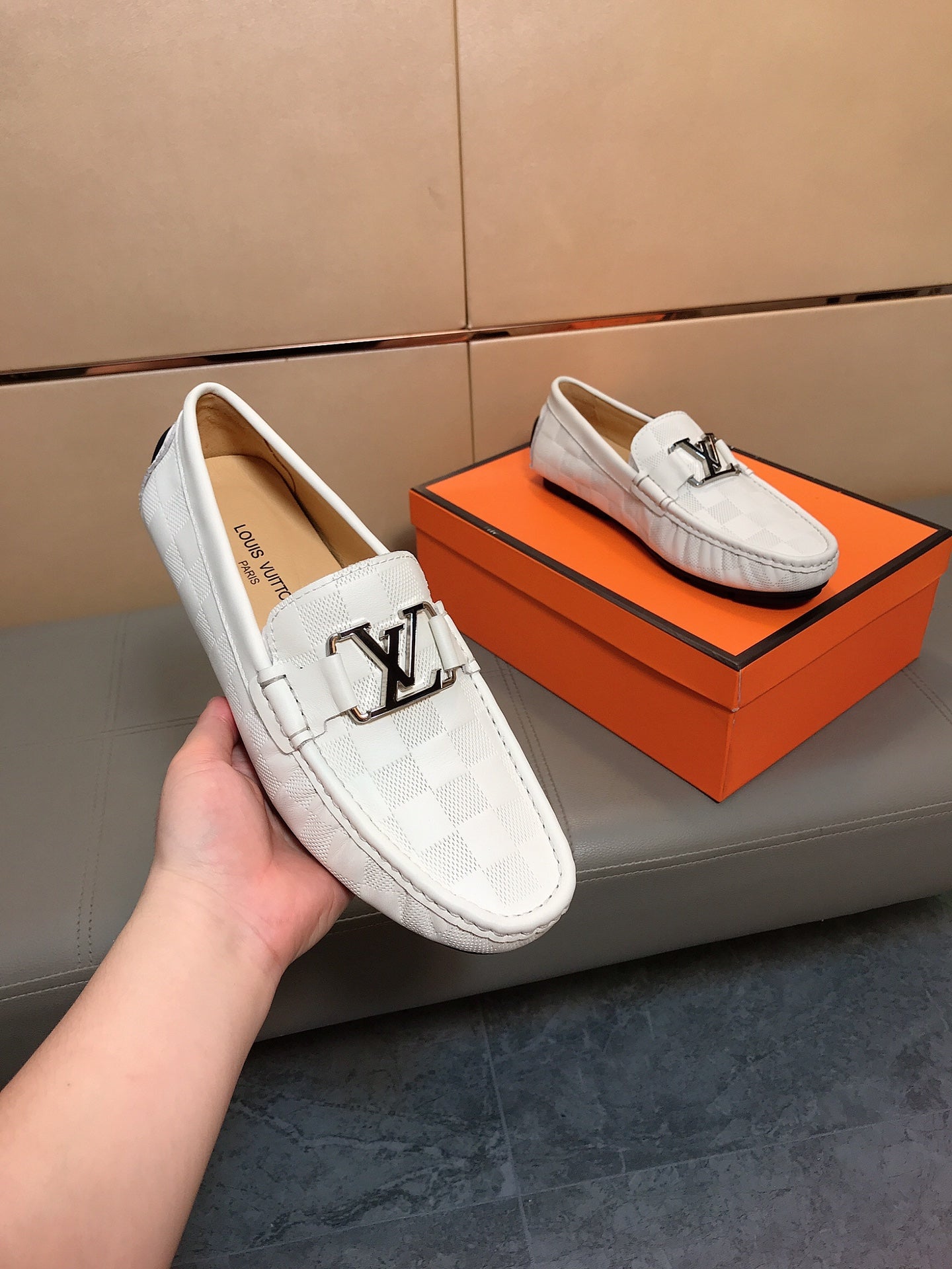 LV LOAFERS IN WHITE DAMIER CALFSKIN