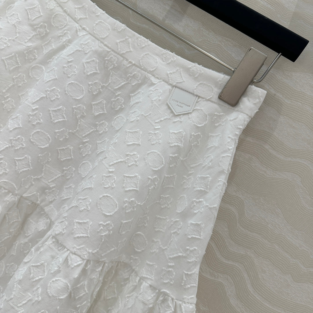 LV Monogram Jacquard Skirt White Cotton