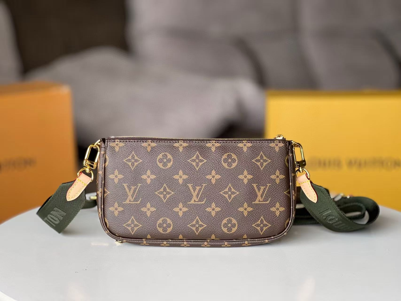LV Multi Pochette Accessoires Bag Brown Green Canvas Leather