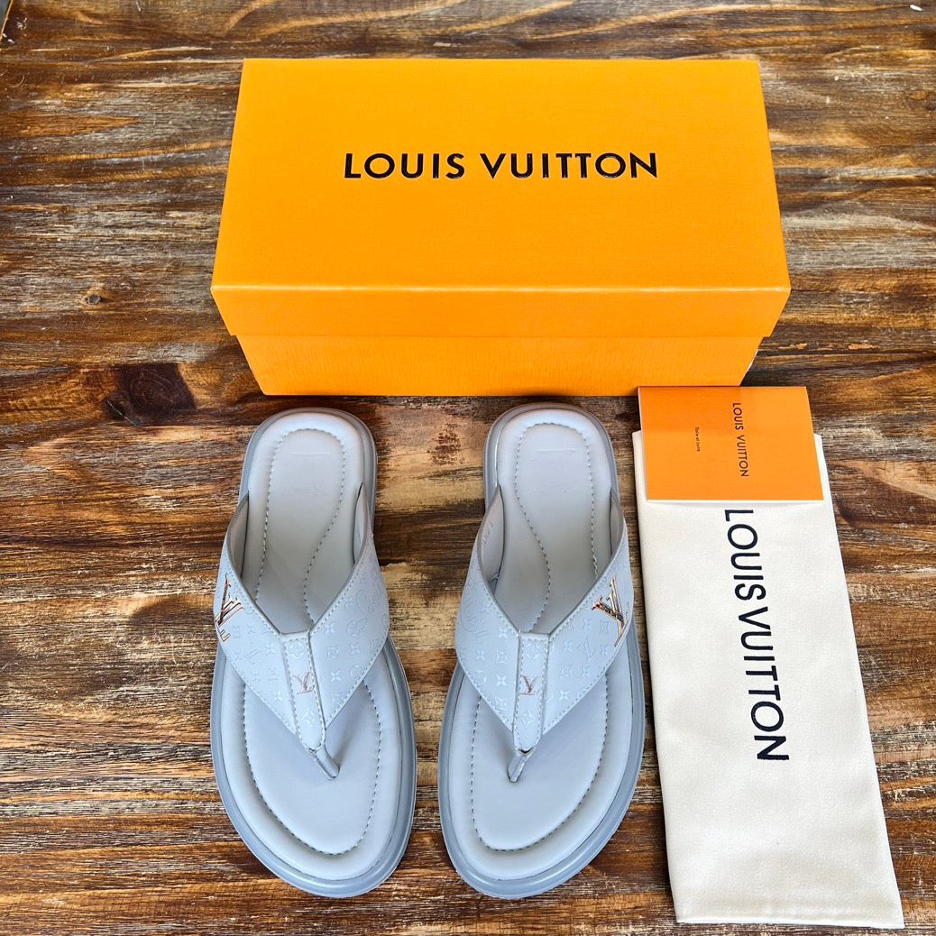 LV THONG SLIPPER IN GREY MONOGRAM CALFSKIN