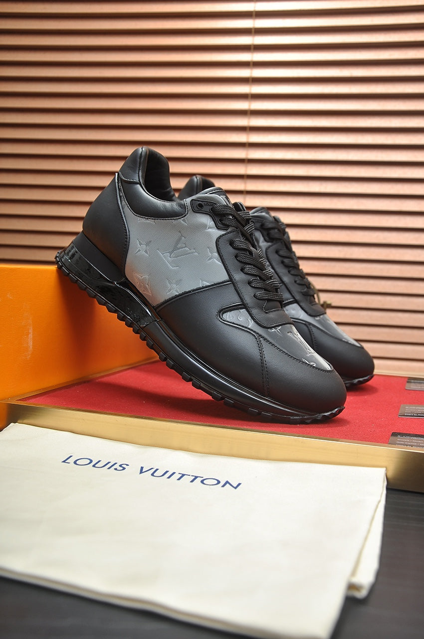 LV TRAINER SHOES IN BLACK MIX GREY EMBOSSED LAMBSKIN