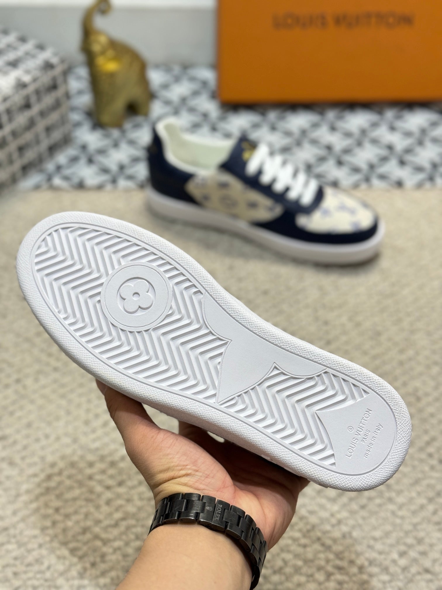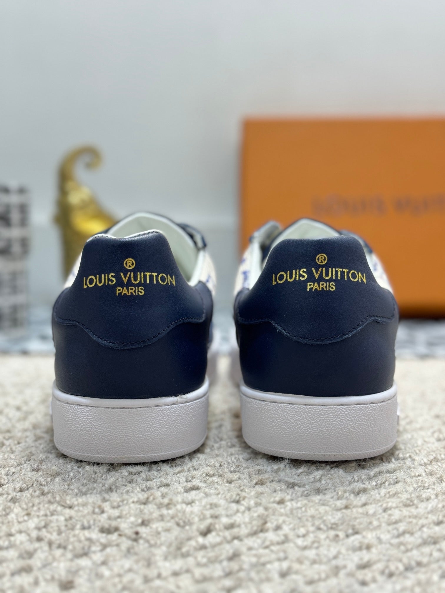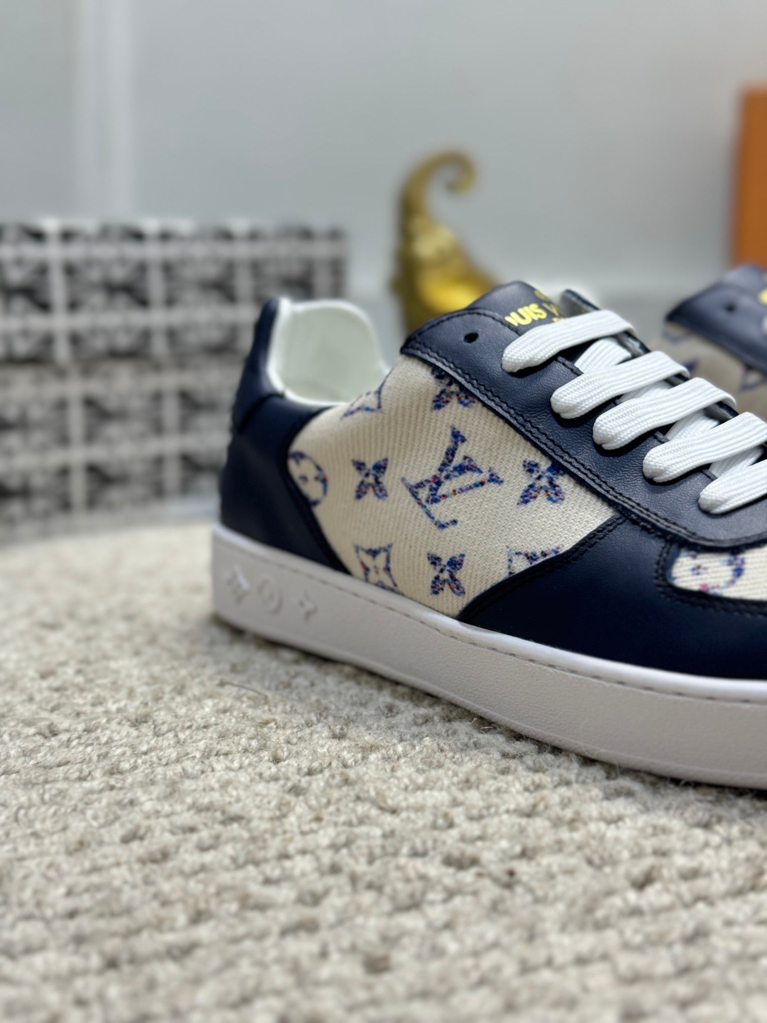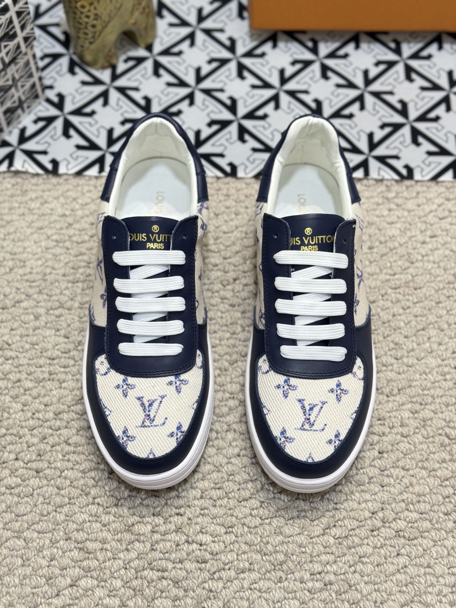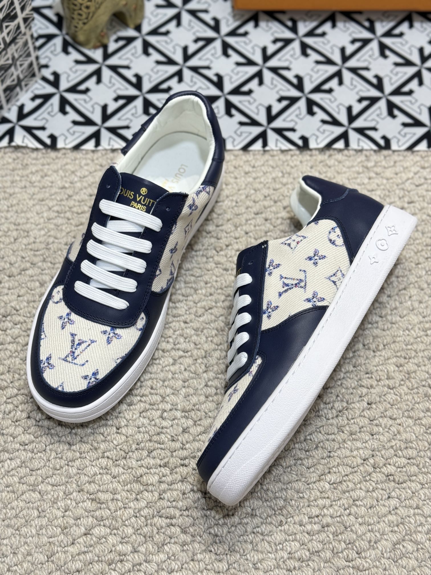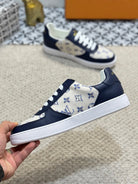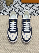 LV TRAINER SNEAKER NAVY BLUE CALFSKIN AND BEIGE MONOGRAM CANVAS