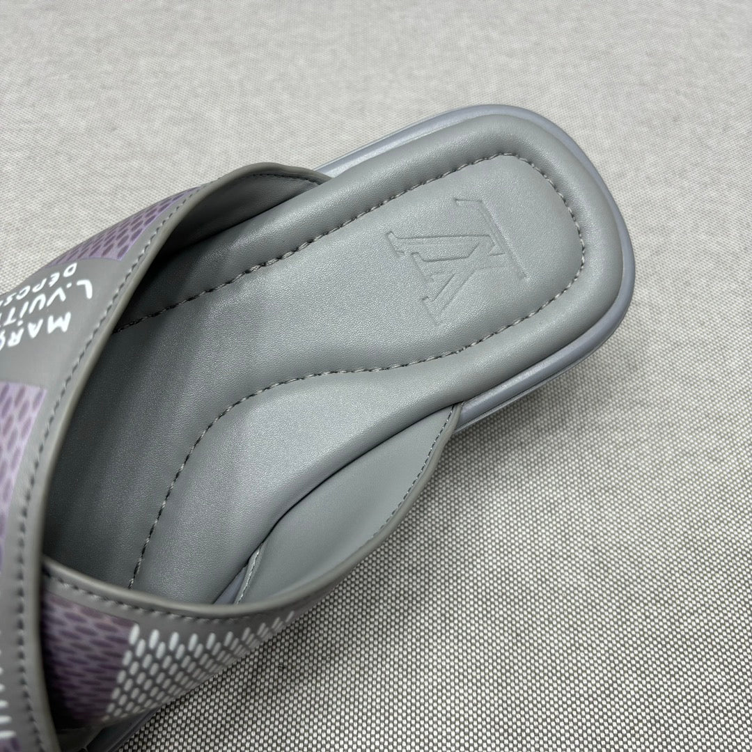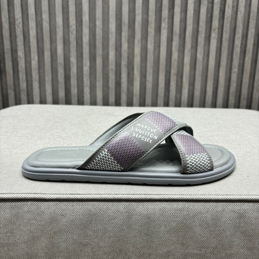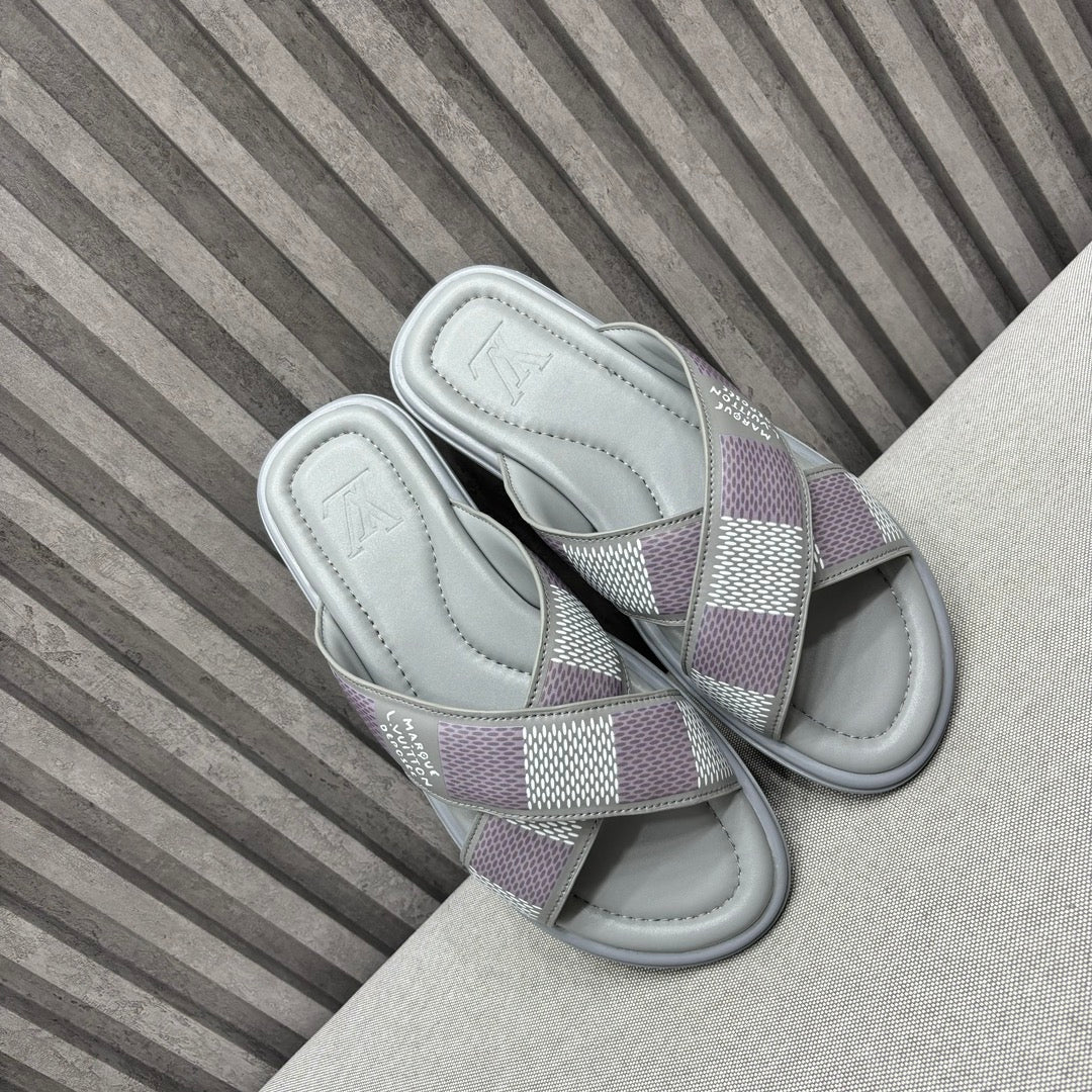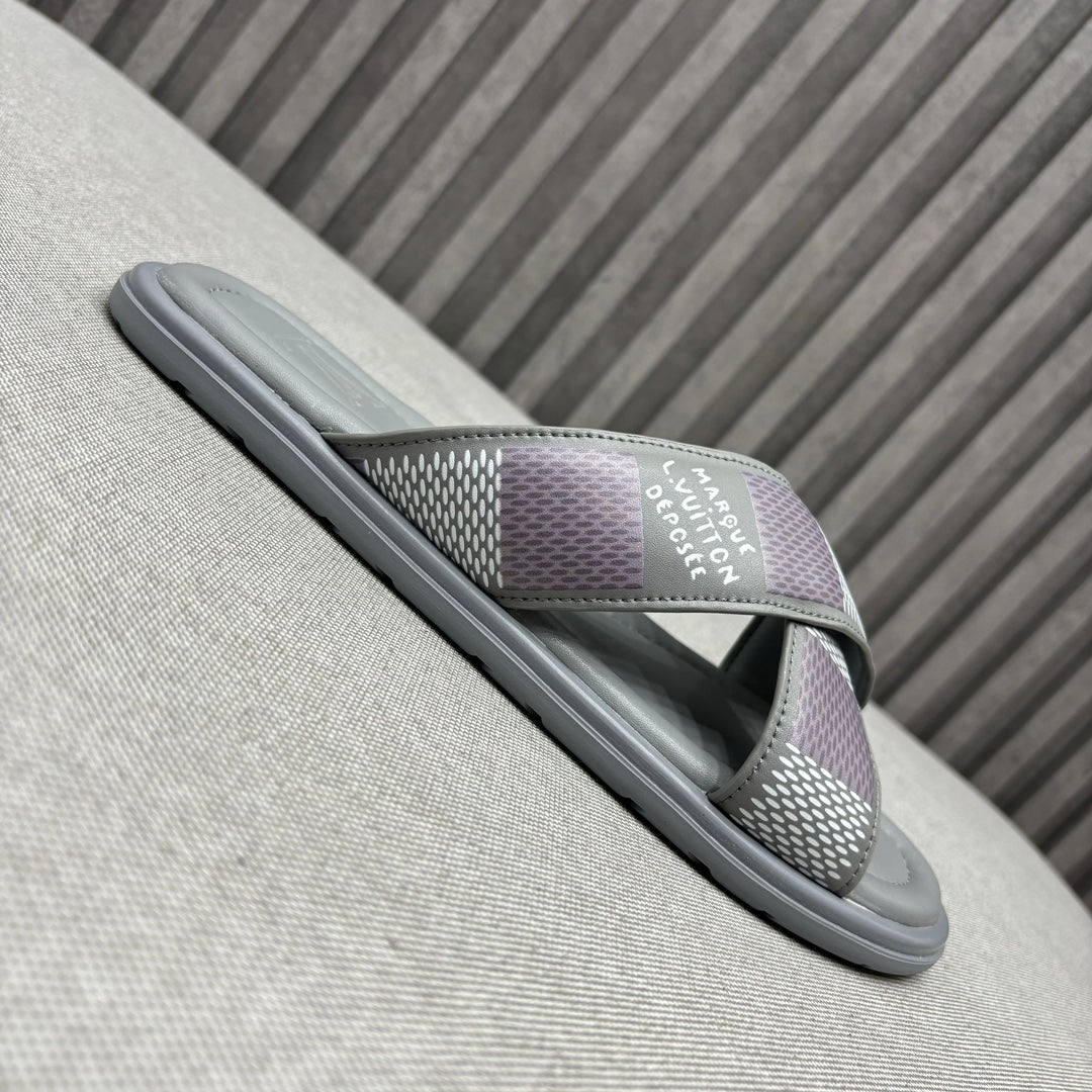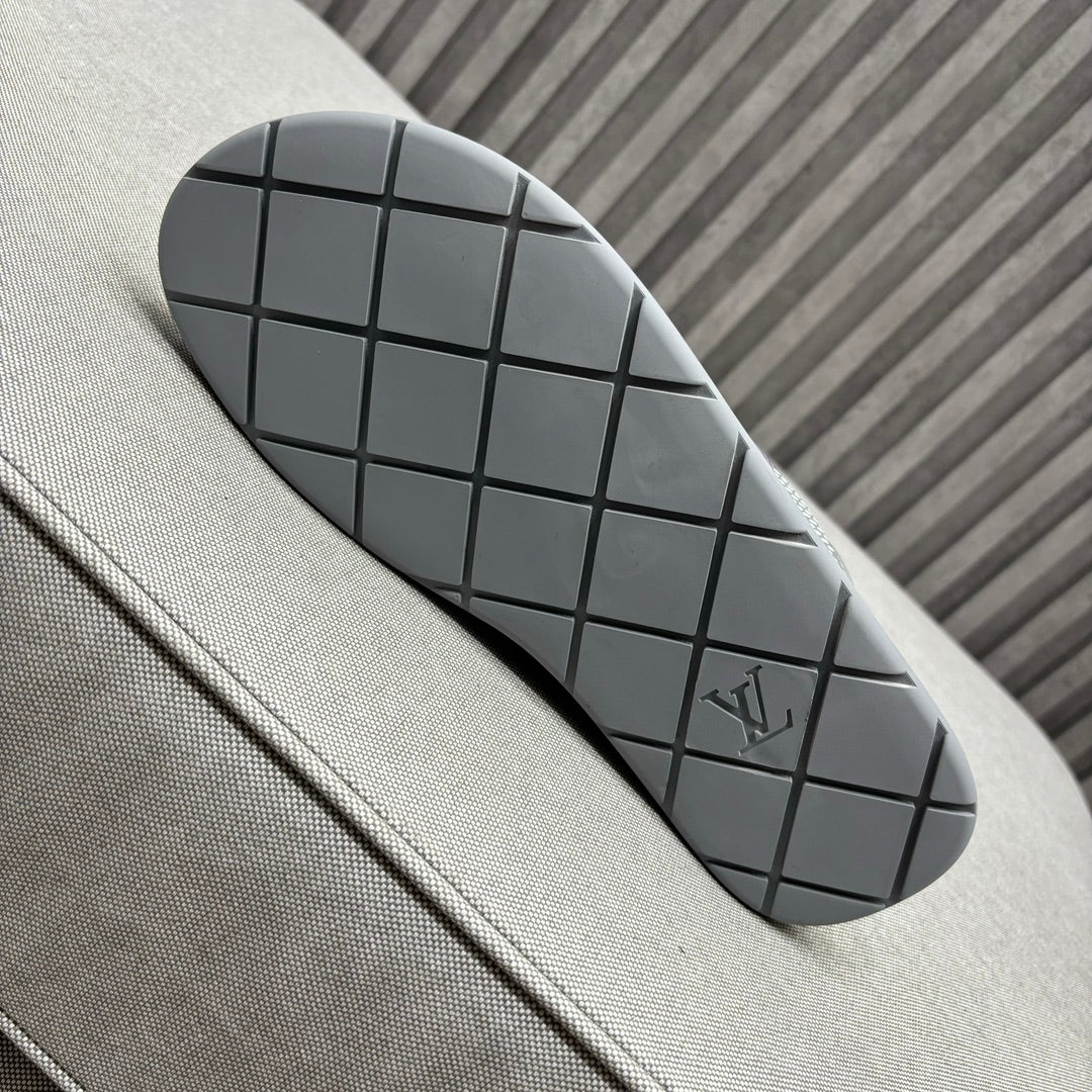 • Premium LV men's slippers, synchronizing with the 2024 early autumn runway collection. The slippers feature a high-quality fabric upper and an original, exclusive comfort sole, ensuring exceptional comfort. These are original factory-followed products.