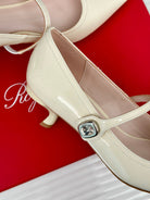 Mary Jane Virgule Pumps 55 White Patent Leather