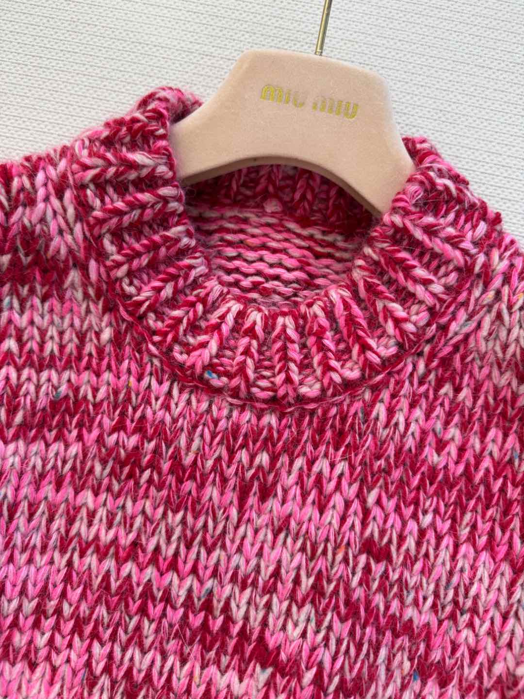 Miu Miu 25 Twisted Snowflake-colored Round-neck Sweater Pink Cashmere