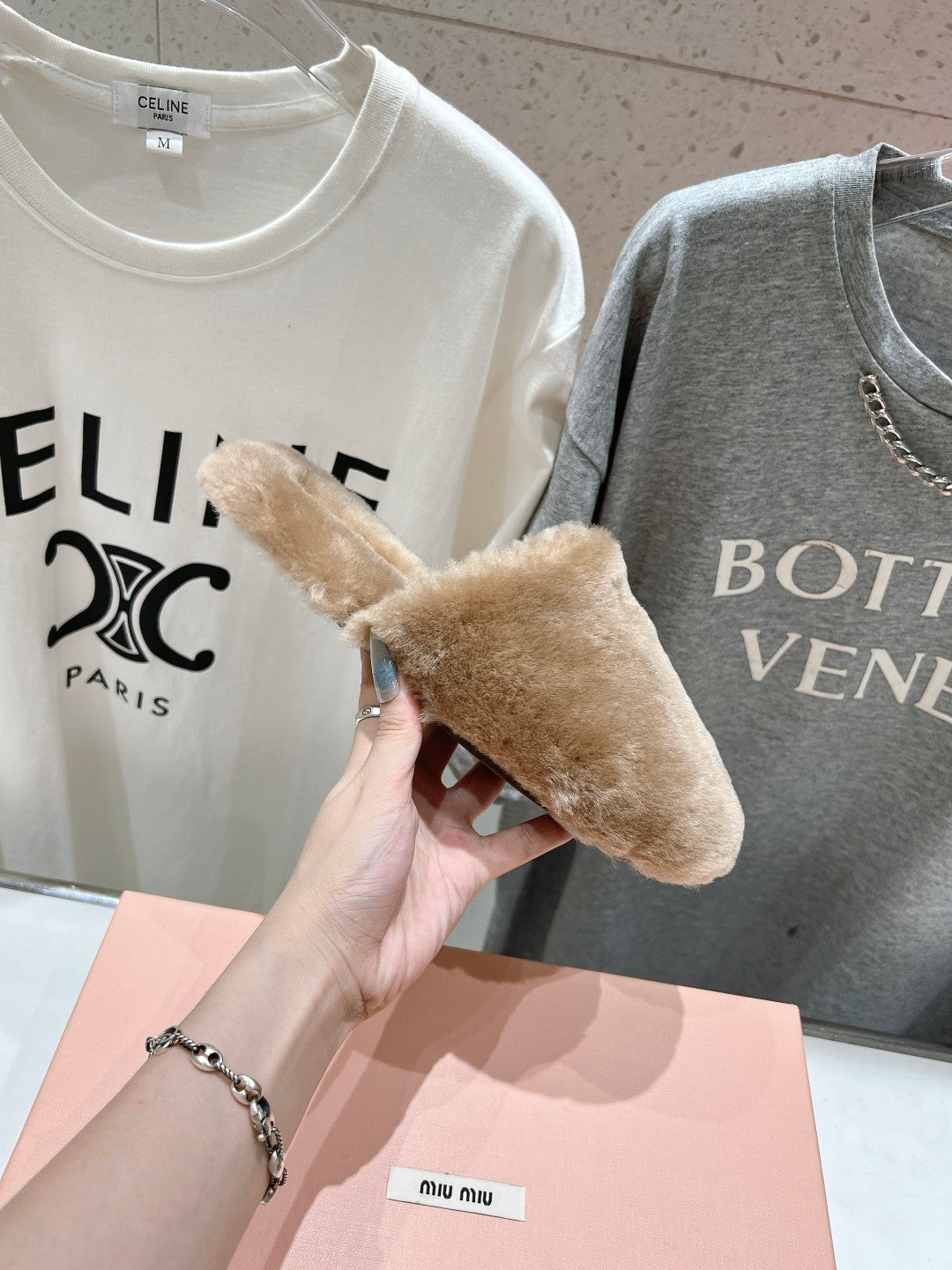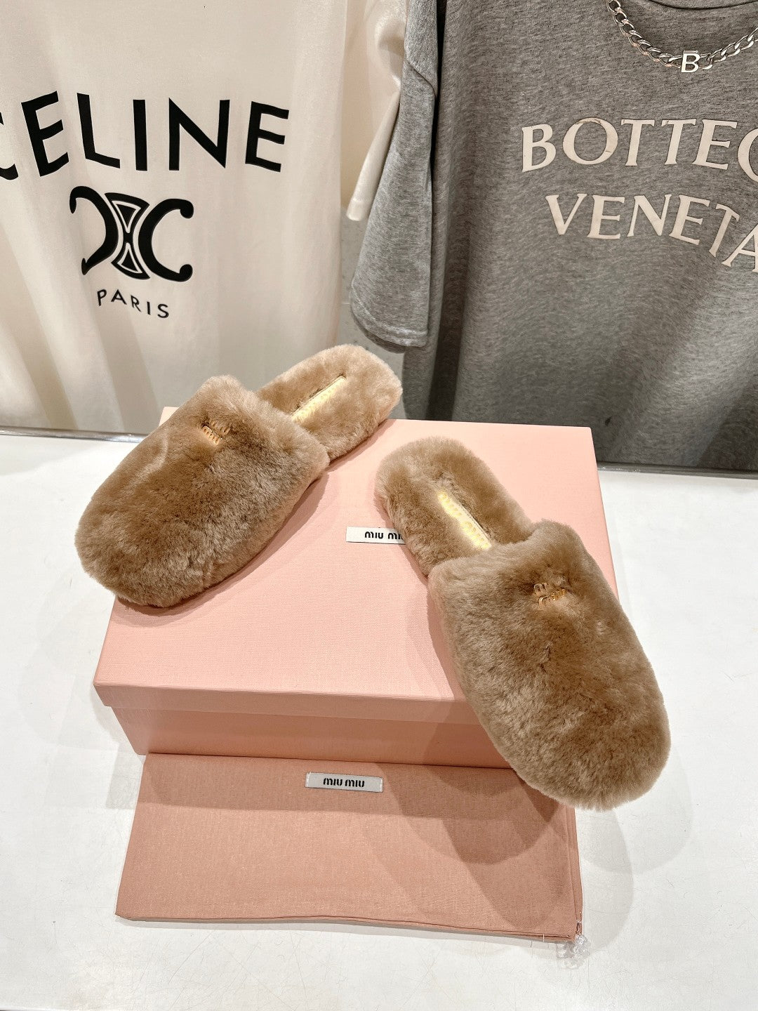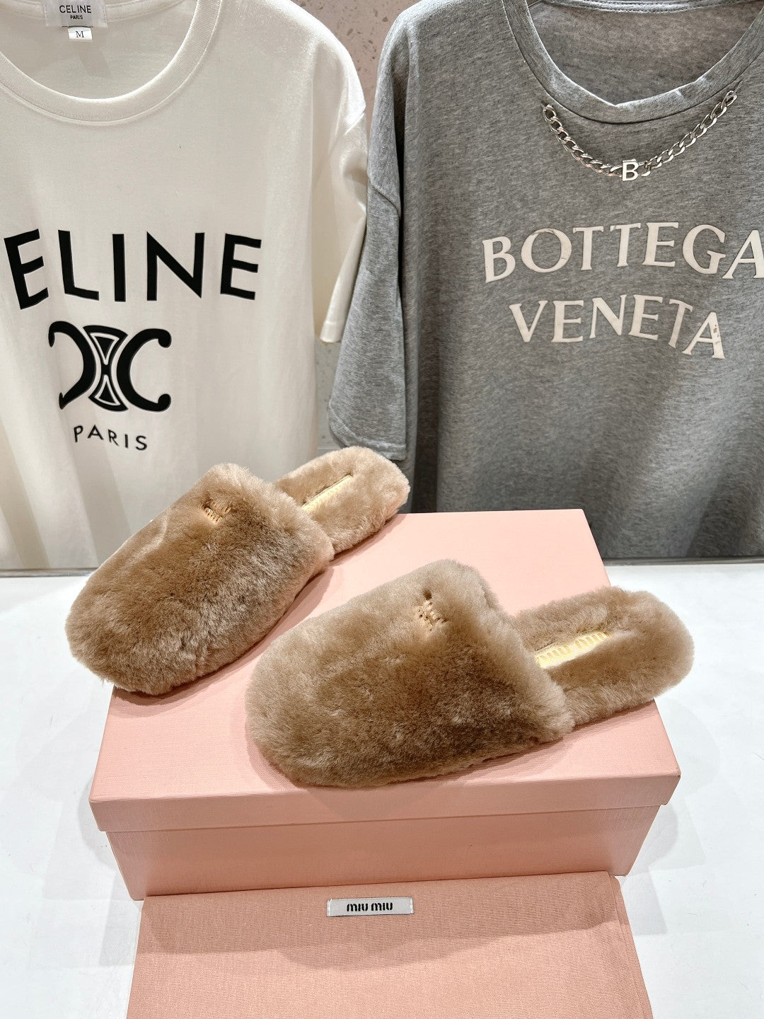 Miu Slippers Light Brown Soft Imported Wool And Fur