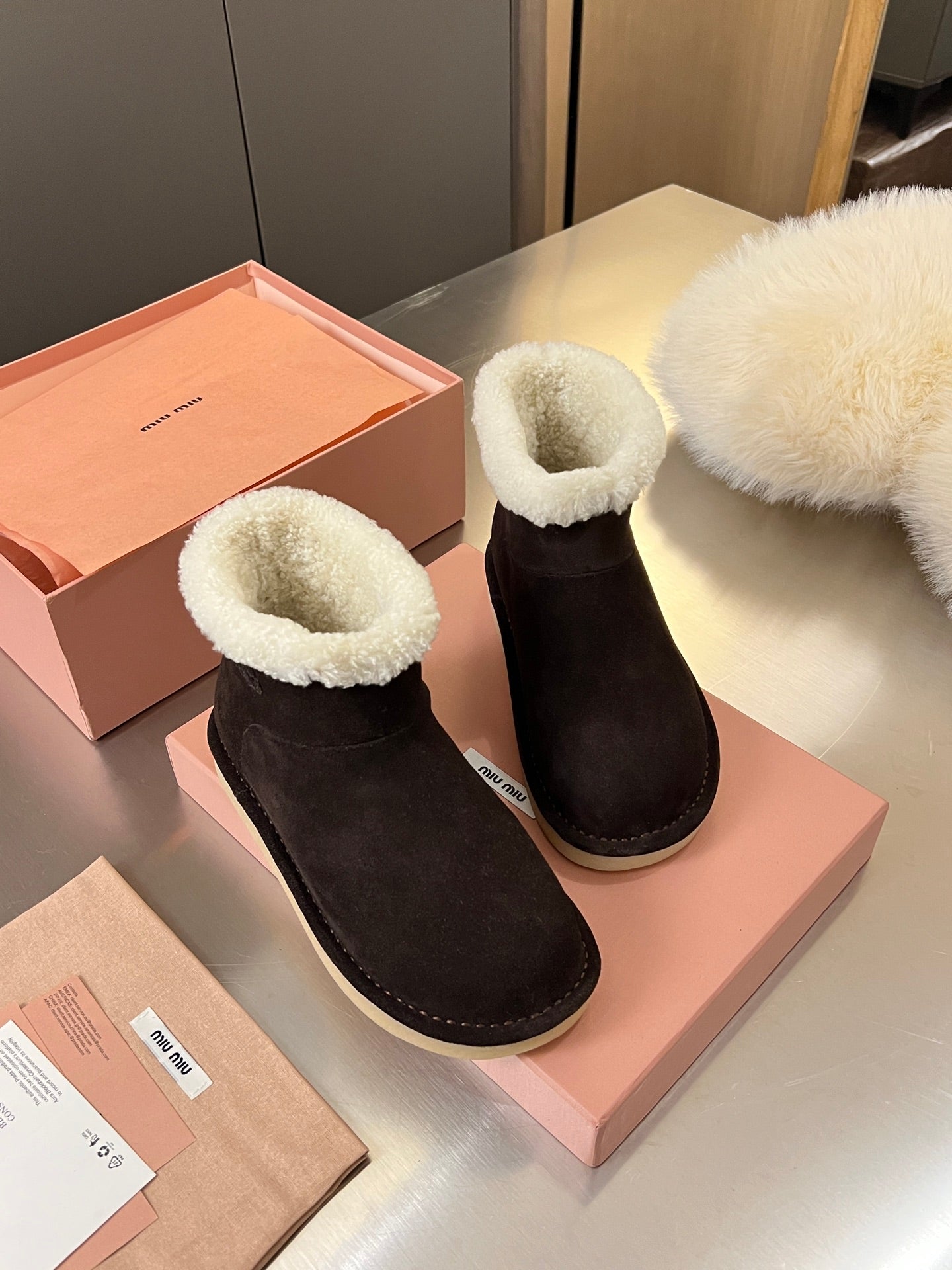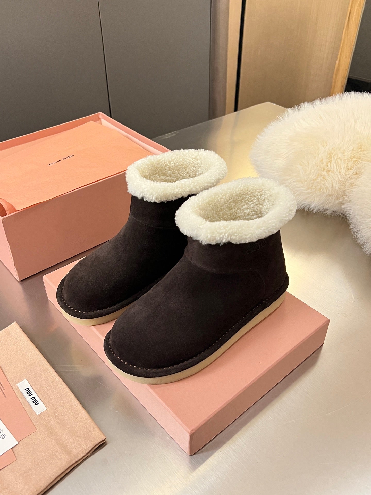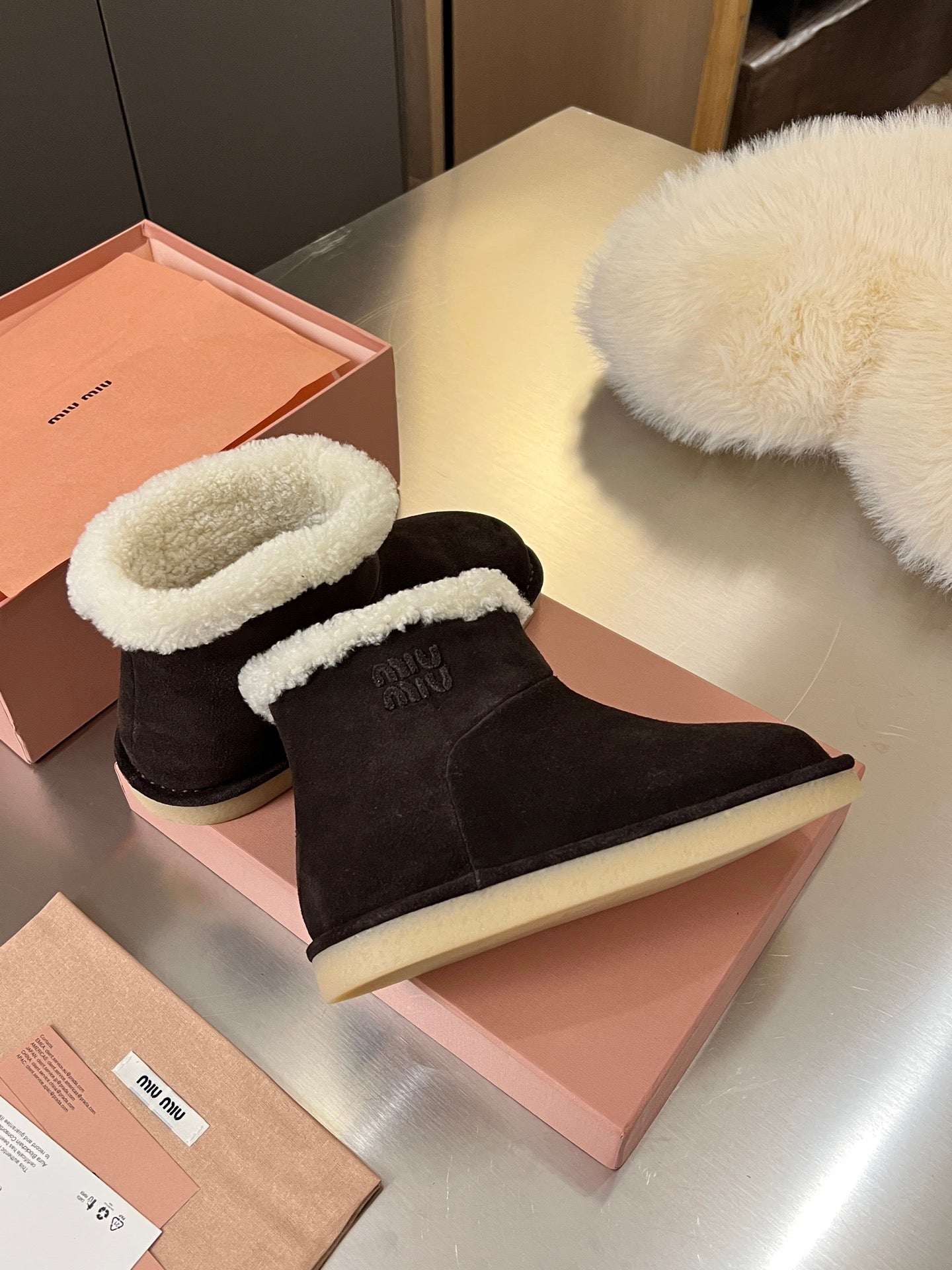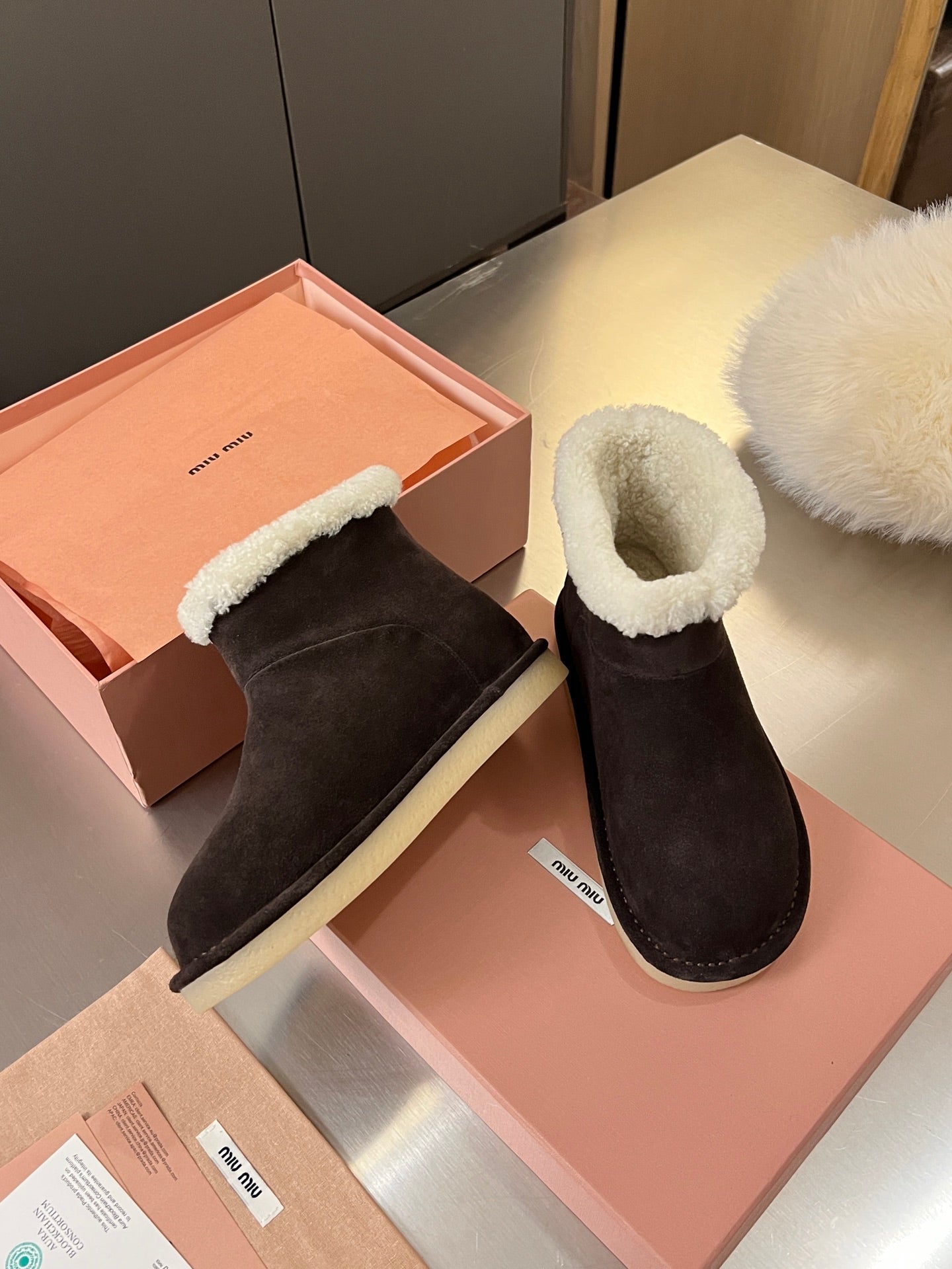 Miumiu 25 Boot Chocolate Brown Mix White Suede Wool 510222
