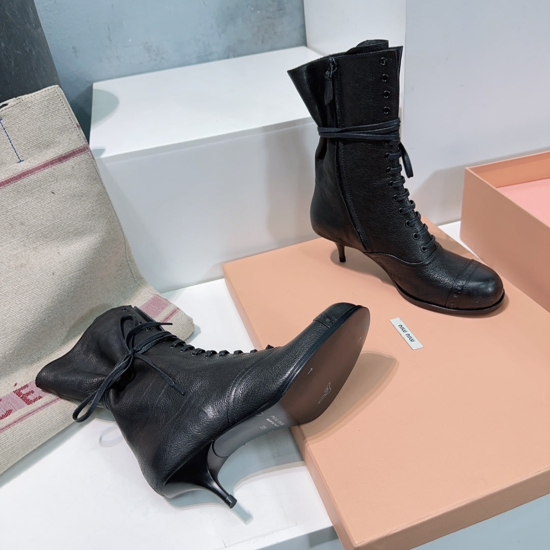 Miumiu 25 Low-heeled Ankle Boot Black Cowhide 511261