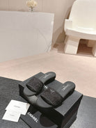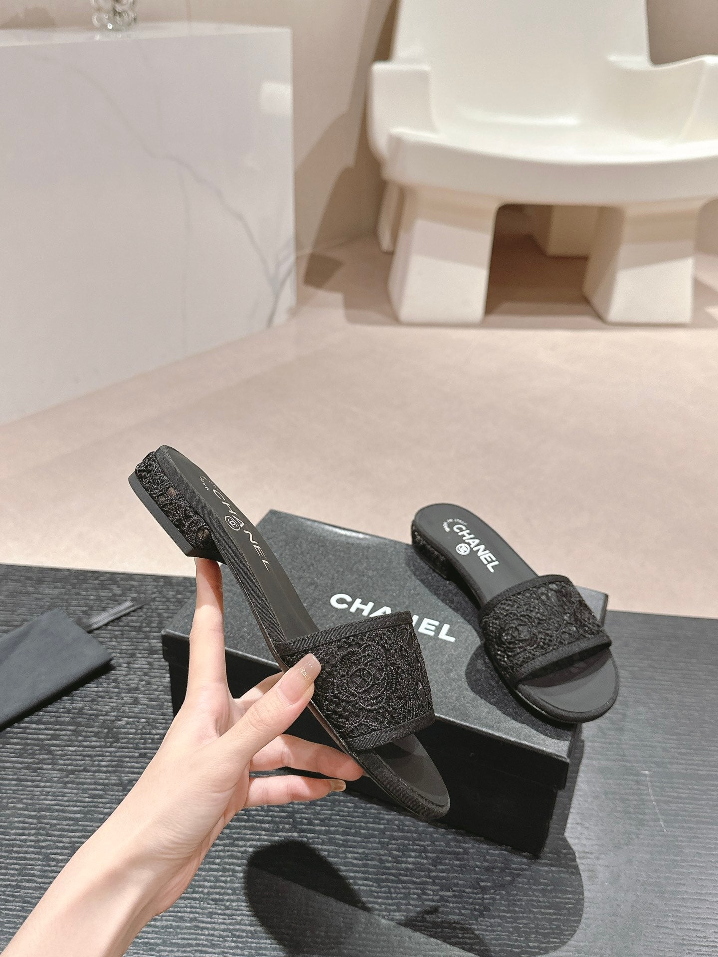 mule sandal black lace fabric