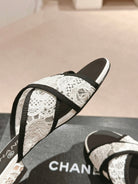 mule sandal cross white lace fabric
