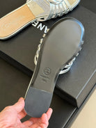 mule sandal flower silver metalic beige lambskin