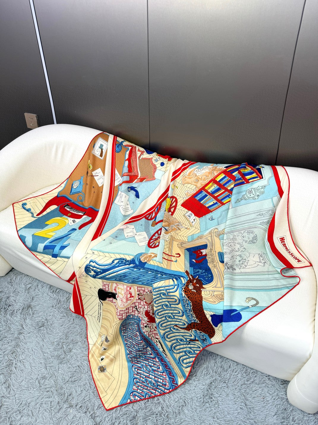 Mystere Au 24 Scarf 135 CM Light Jade Blue Colorful Cashmere And Silk