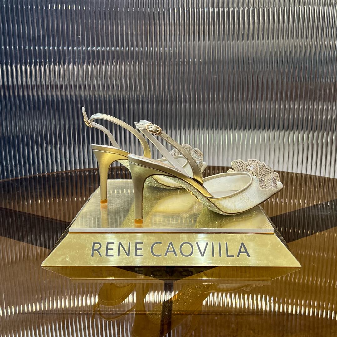 RC 25C Flower-Studded Diamond High-Heeled Sandals Beige Sheepskin 174917
