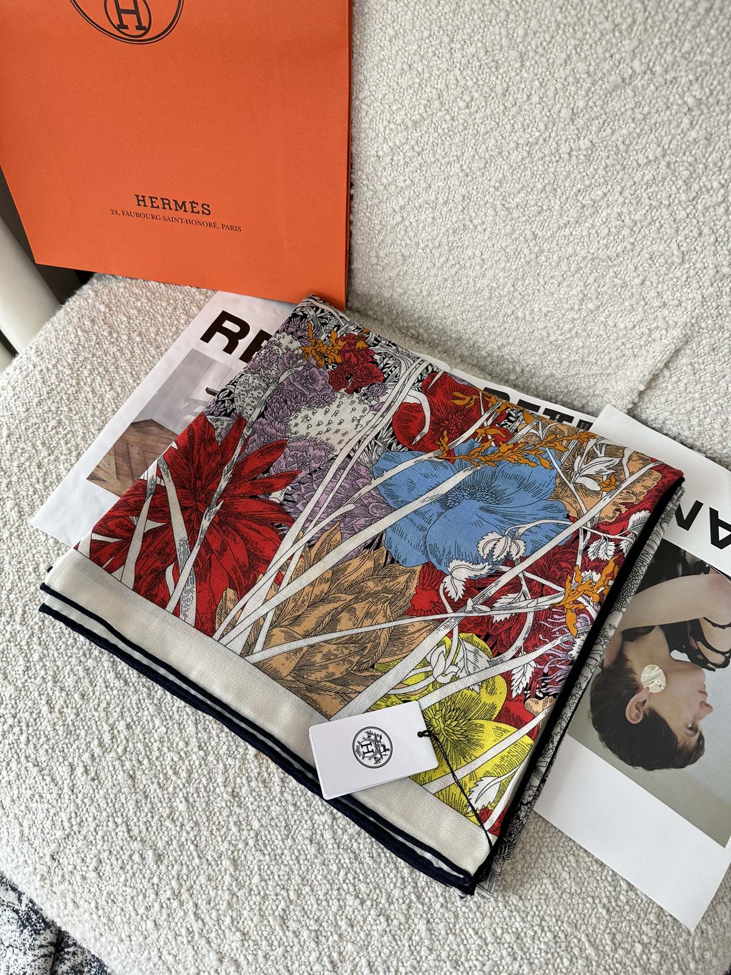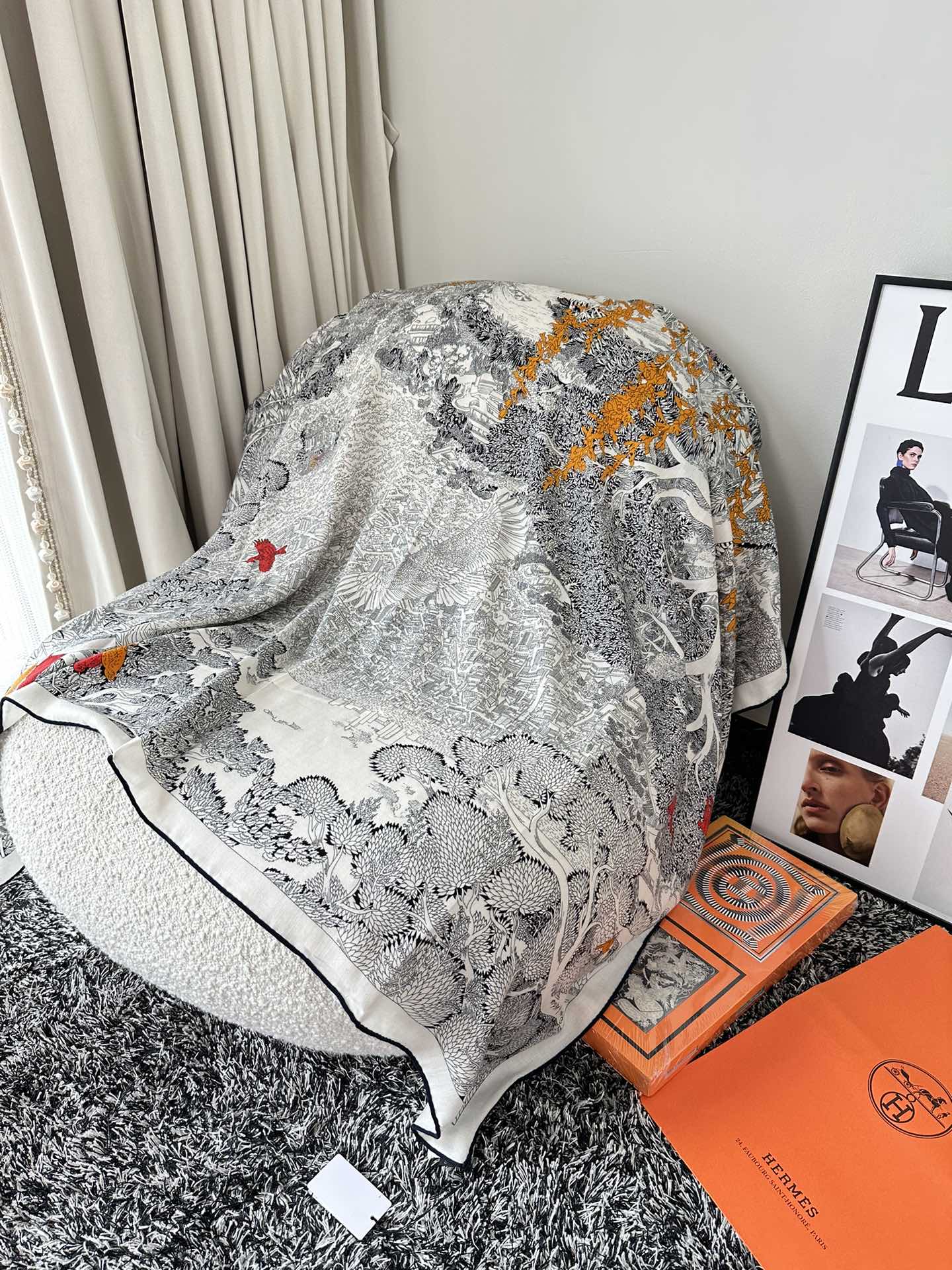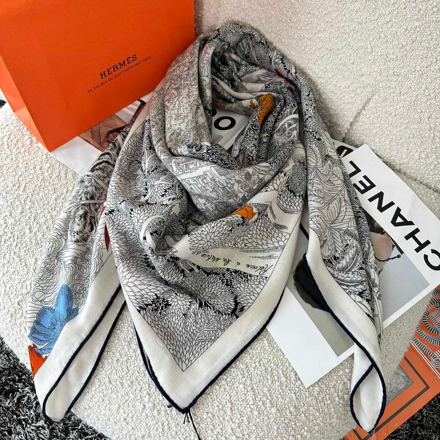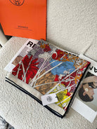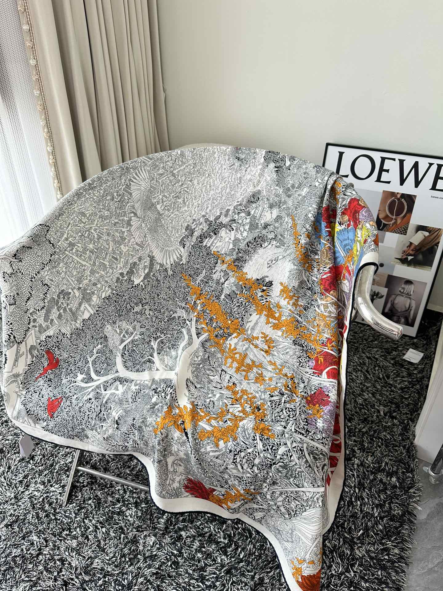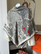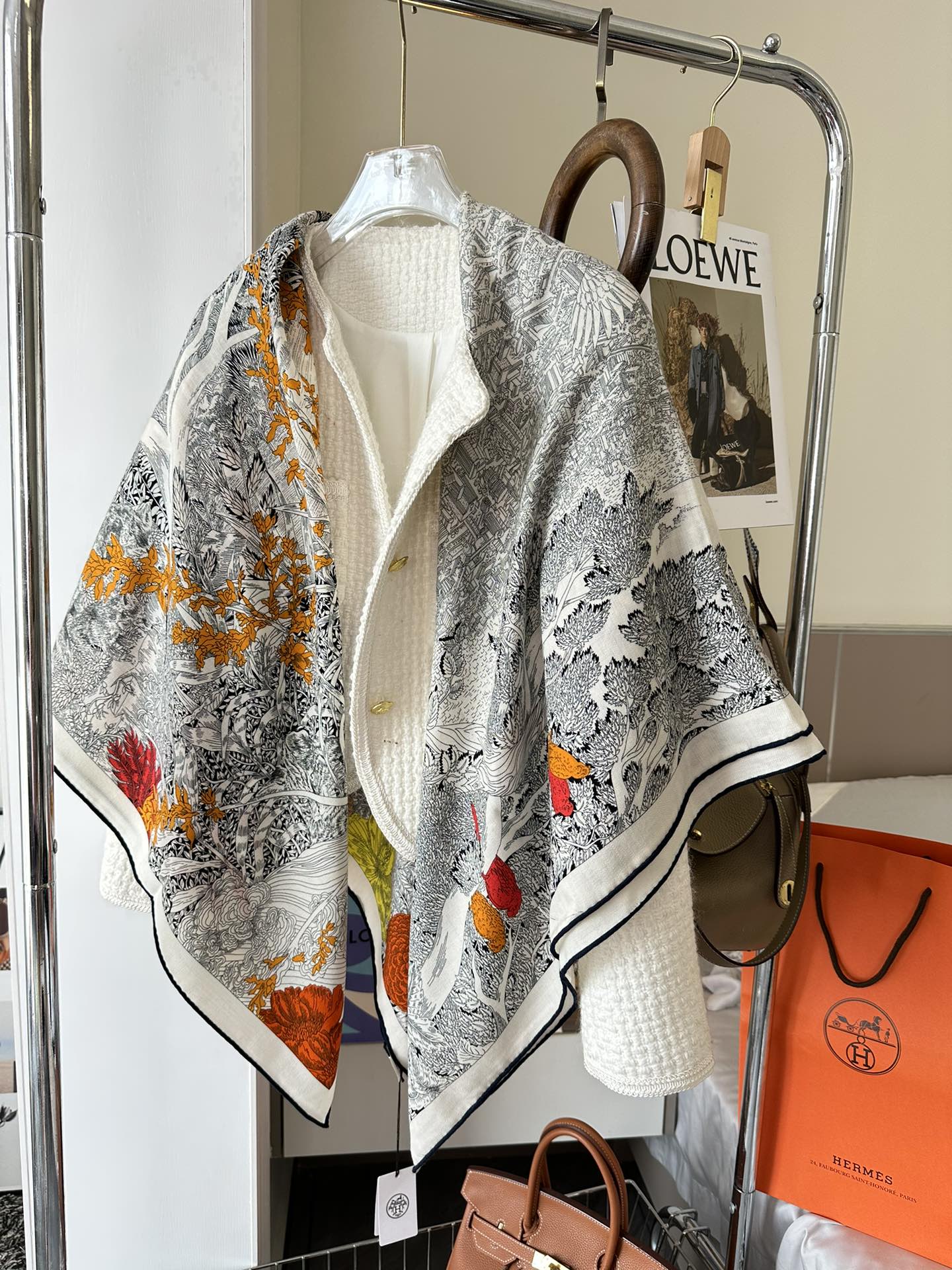 Retour A La Nature Shawl 140 CM White Black Colorful Silk