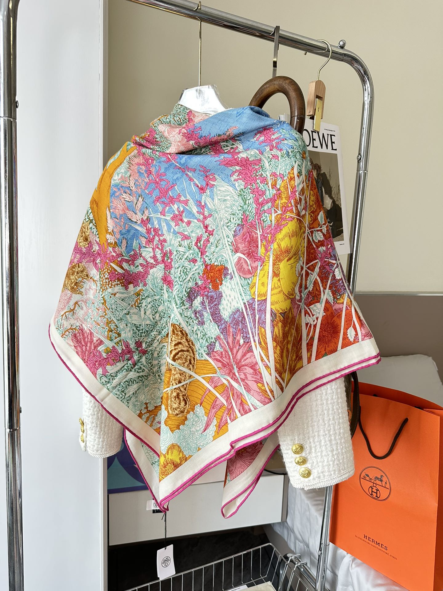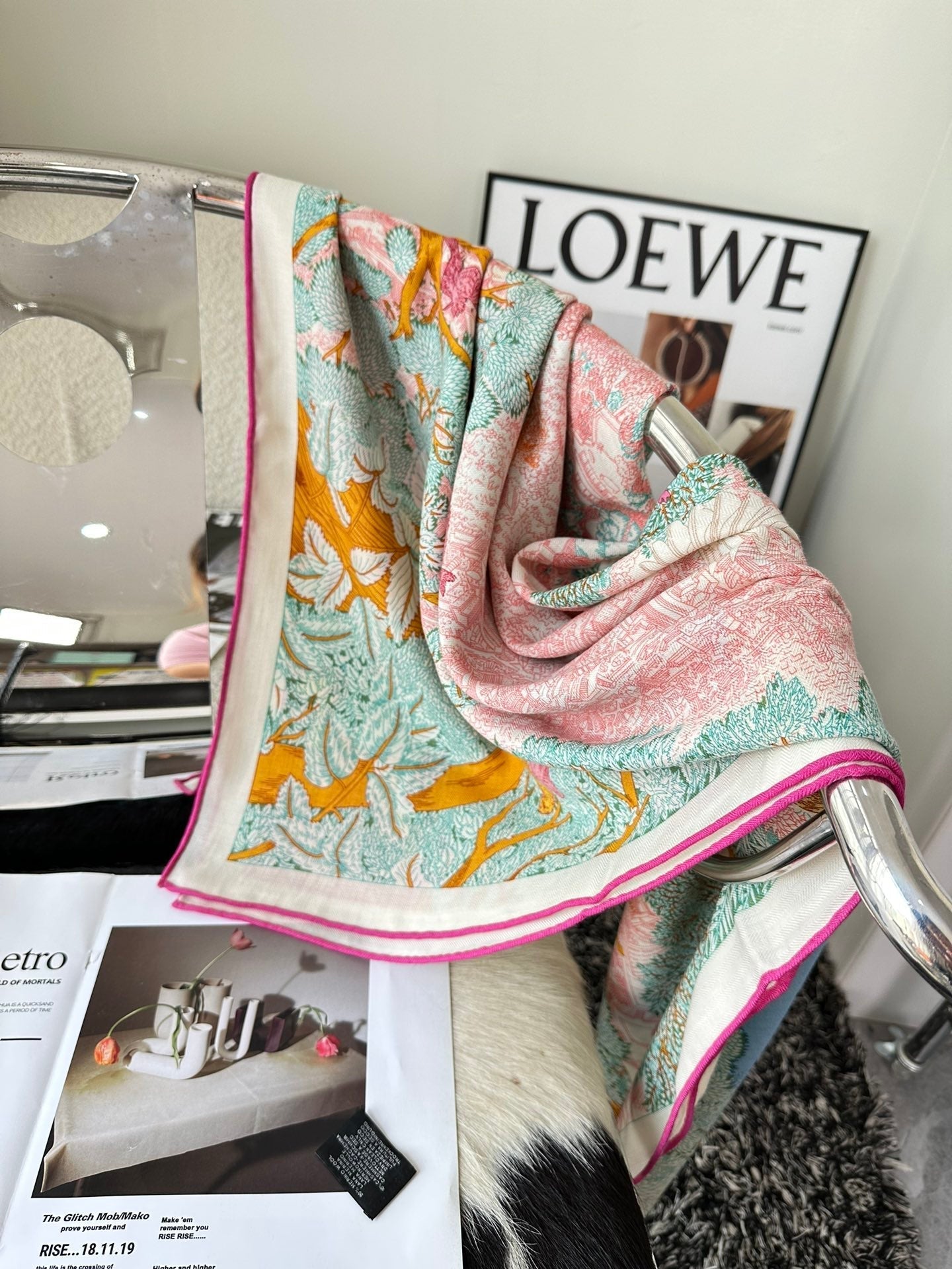 Retourala Nature Hermes Scarf 140 CM Turquoise Colorful Silk