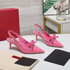 Rockstud Bow Slingback Pink Calfskin With Matching Studs