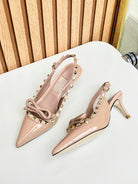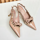 Rockstud Bow Slingback Rose Cannelle Calfskin With Matching Studs