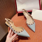 Rockstud Slingback Ballerina Flats Mist Blue Leather