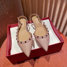 Rockstud Slingback Ballerina Flats Rose Cannelle Leather