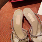 Rockstud Slingback Ballerina Flats White Leather Cross Straps