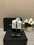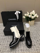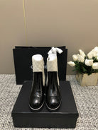 ROUND-TOE SHORT BOOTS BLACK MIX WHITE SHEEPSKIN