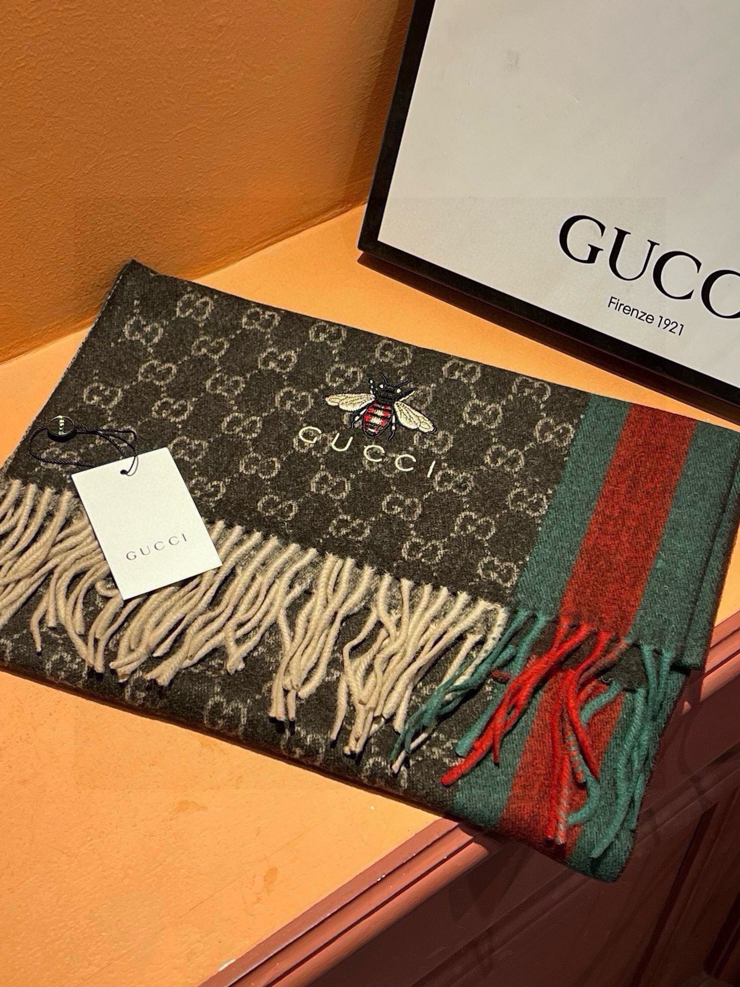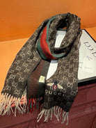 SCARF 180 CM IN CAROB BROWN CASHMERE WITH BEE PATTERN 396475