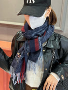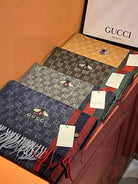 SCARF 180 CM IN NAVY BLUE CASHMERE WITH BEE PATTERN 396476