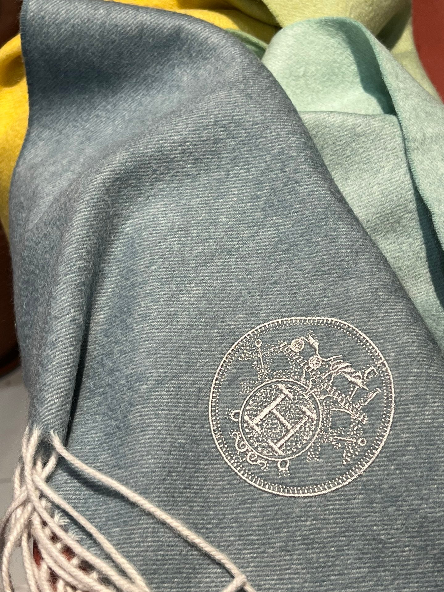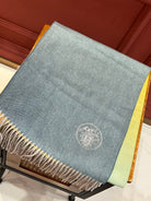Scarf 190 CM In Blue Yellow Mix Jade Green Cashmere