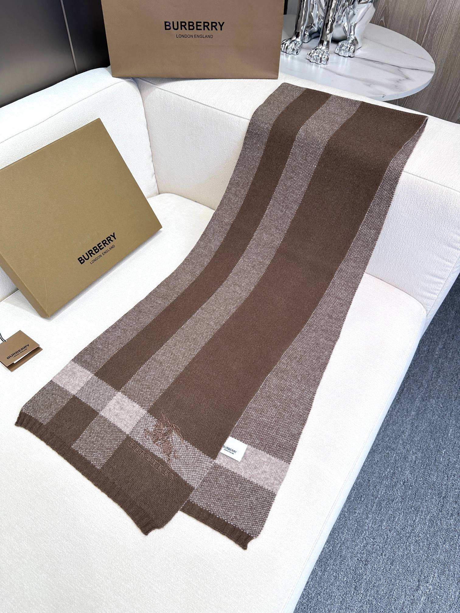 SCARF 190 CM IN MEDIUM BROWN CASHMERE 398395