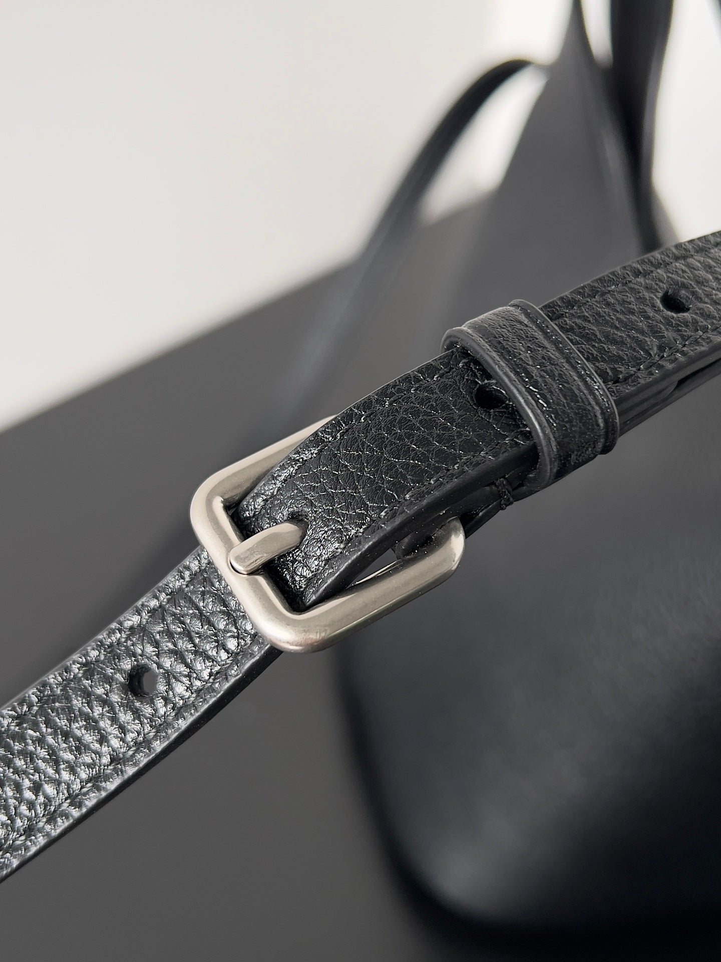 SILVER LOCKER SHOULDER BAG 24 IN BLACK CALFSKIN