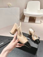 slingback 90 beige calfskin black patent calfskin
