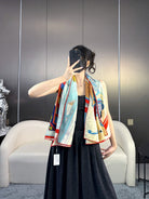 Square scarf 135 CM Light Jade Blue Colorful Cashmere And Silk
