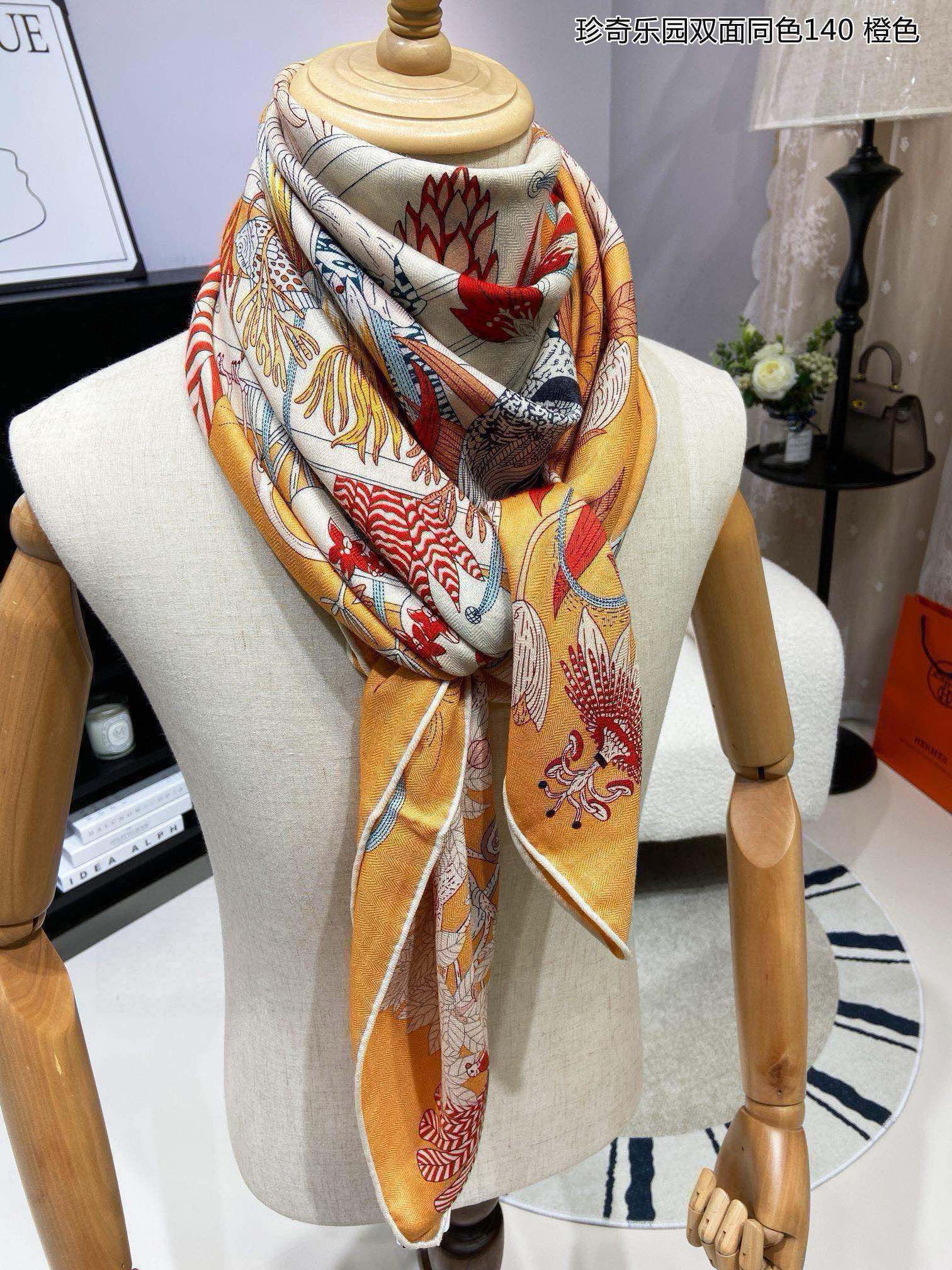 Square Scarf 140 CM Yellow Orange Colorful Cashmere And Silk