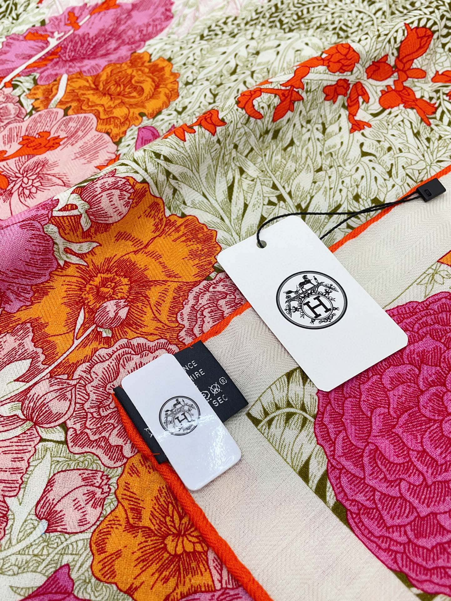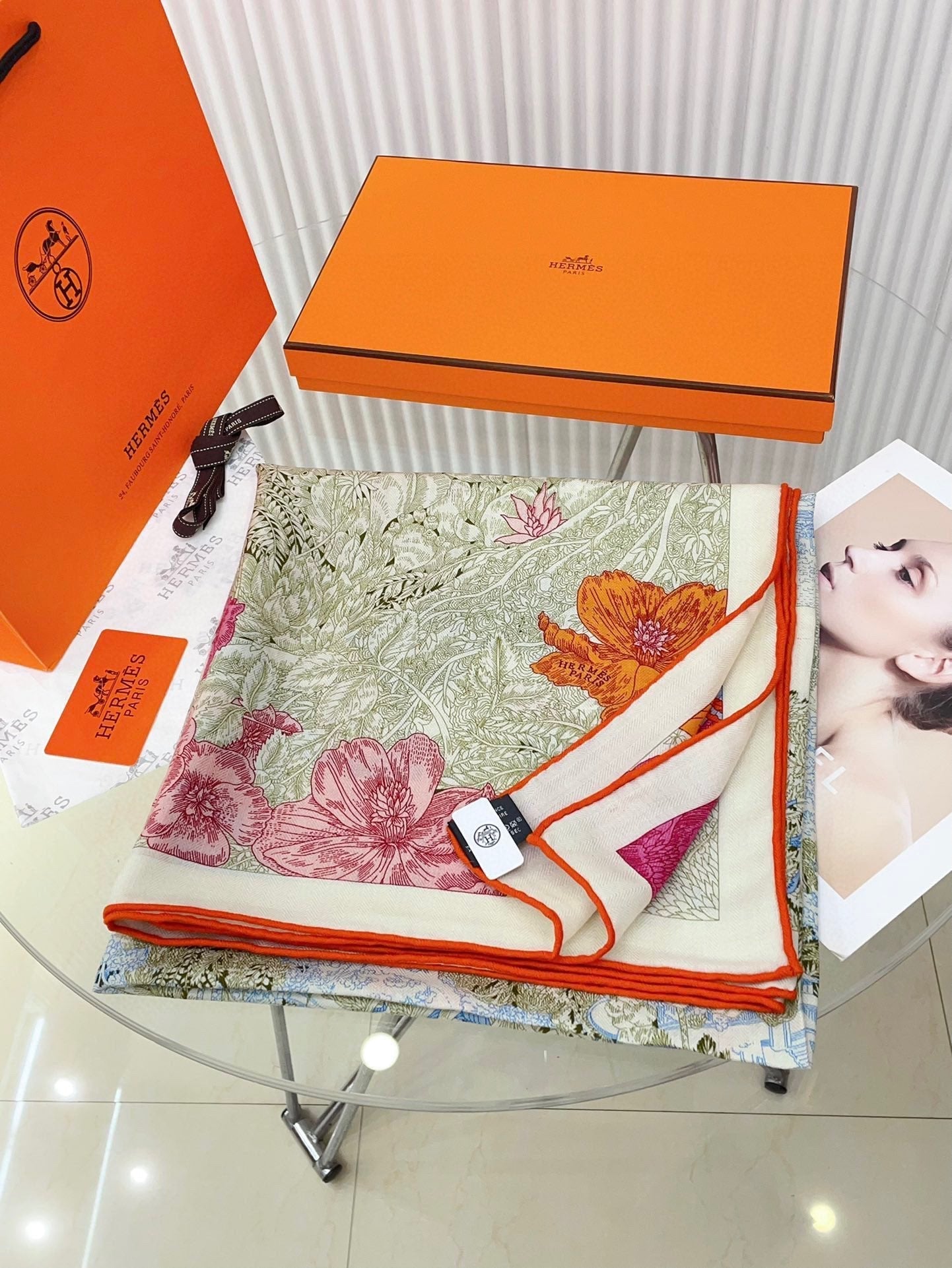 Square Scarf 140CM In Light Blue Colorful Cashmere And Silk