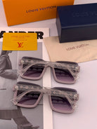 SQUARE SUNGLASSES L5221 IN CLEAR ACETATE GREY SMOKE LENSES