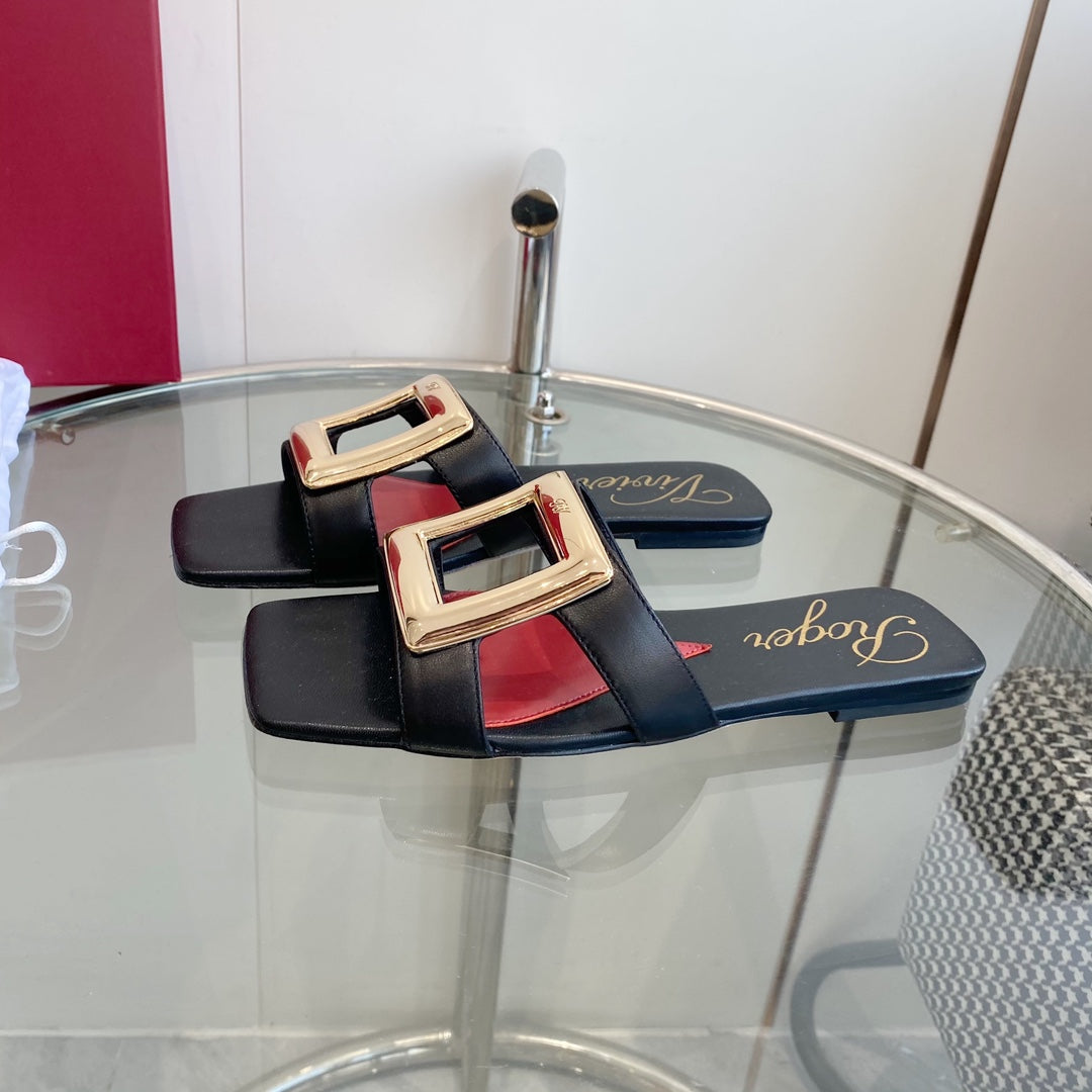 Viv Love Heart Slippers Black Fetal Cowhide 255204