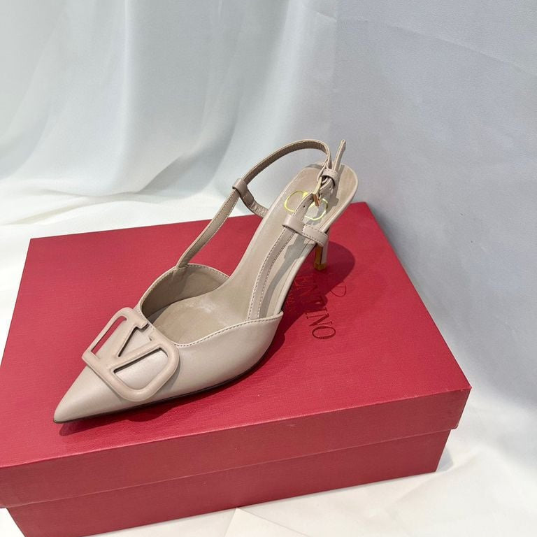 VLOGO SIGNATURE NUDE CALFSKIN SLINGBACK PUMP