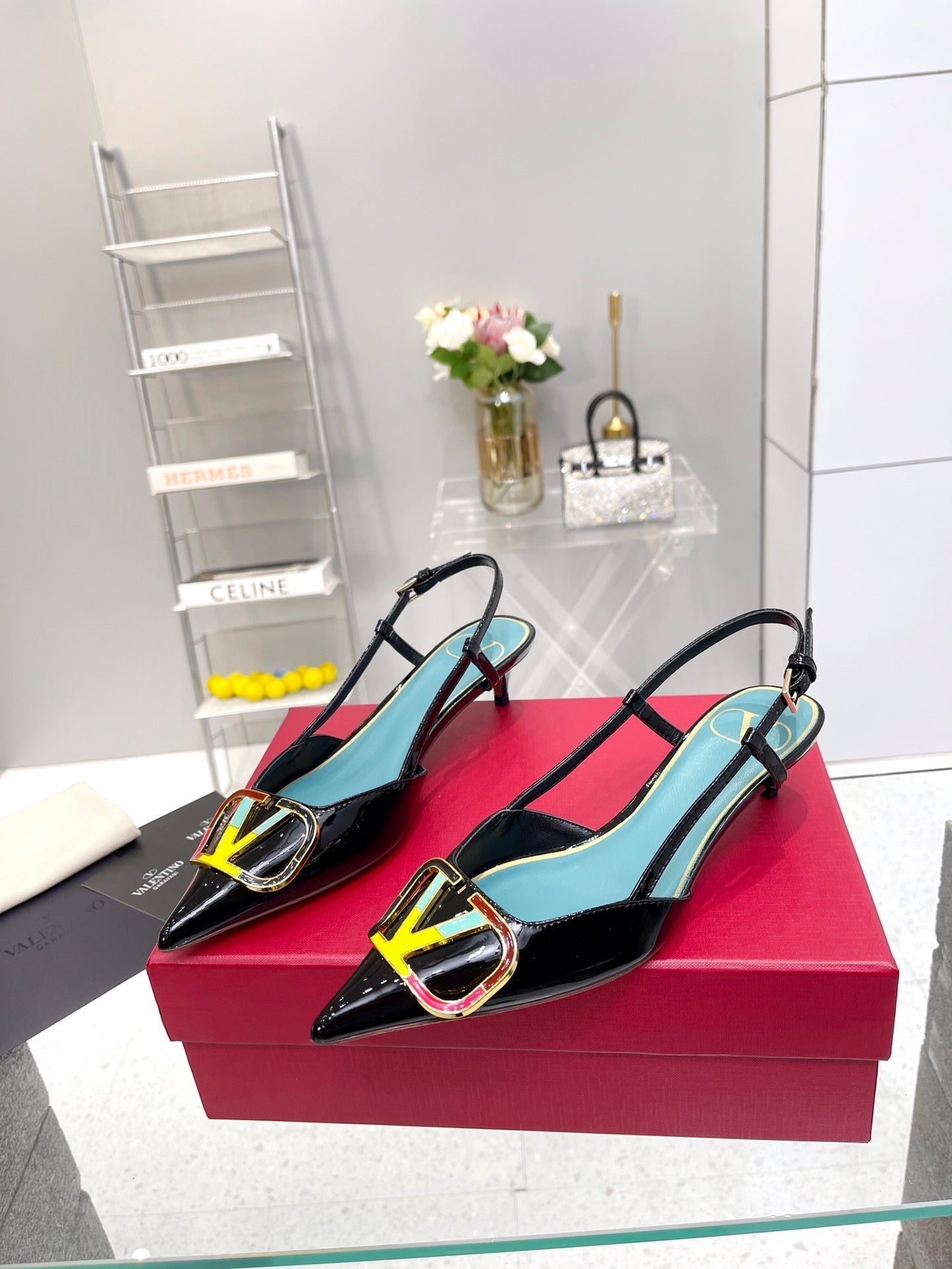 VT Vlogo Signature Black Slingback Patent Leather