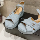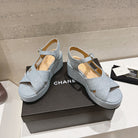 Wedge Open-Toe High Heel Sandals Saphire Blue Sheepskin