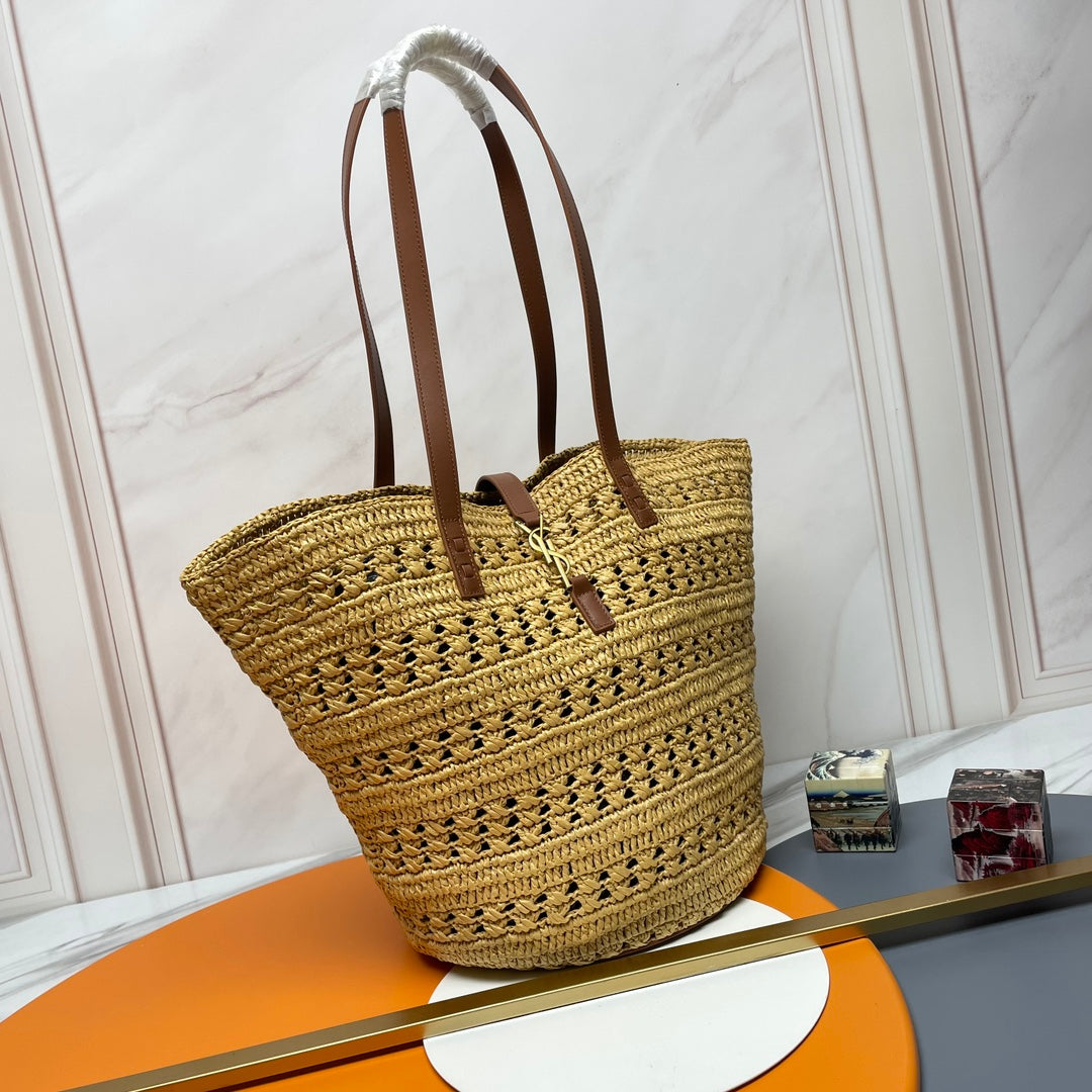 YSL PANIER BAG 55CM BEIGE CROCHET RAFFIA TAN CALFSKIN