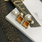 CD PEARL EARRINGS GOLD DIAMOND