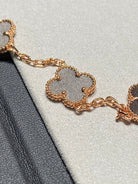 CLOVER 5 MOTIF GREY MOP PINK GOLD BRACELET